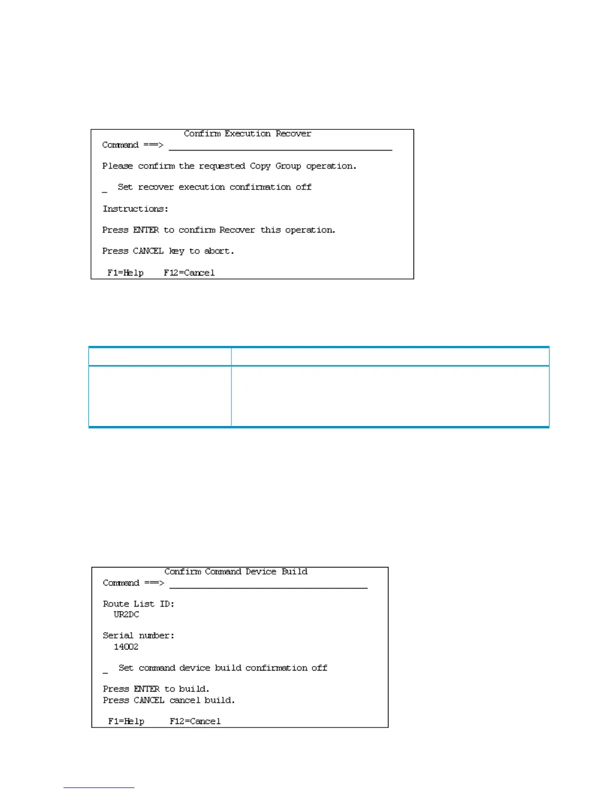 If c is specified in AC in the Manage Copy Groups panel, the Confirm Execution Recover panel
