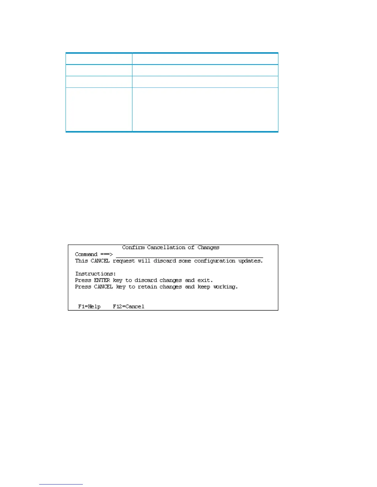 Pressing the Enter key cancels the update of the configuration file. Pressing the F12=Cancel key