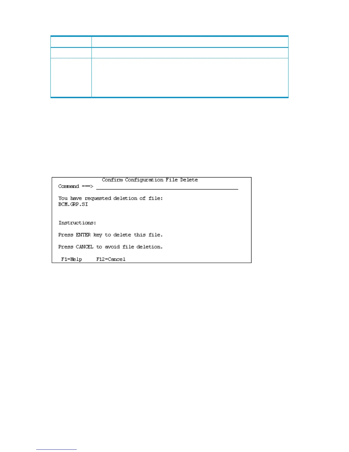 Pressing the Enter key deletes the configuration file. Pressing the F12=Cancel key cancels the