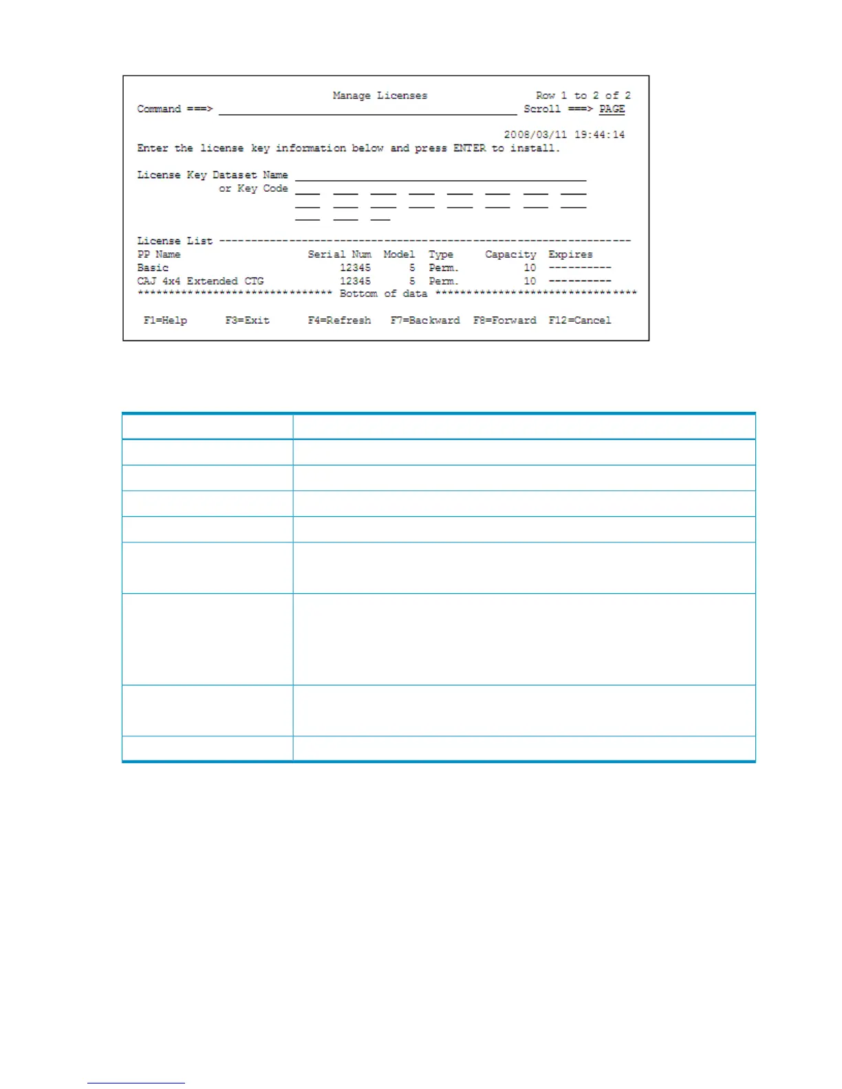 installed license information when an installation completes, or the F4=Refresh key is pressed.