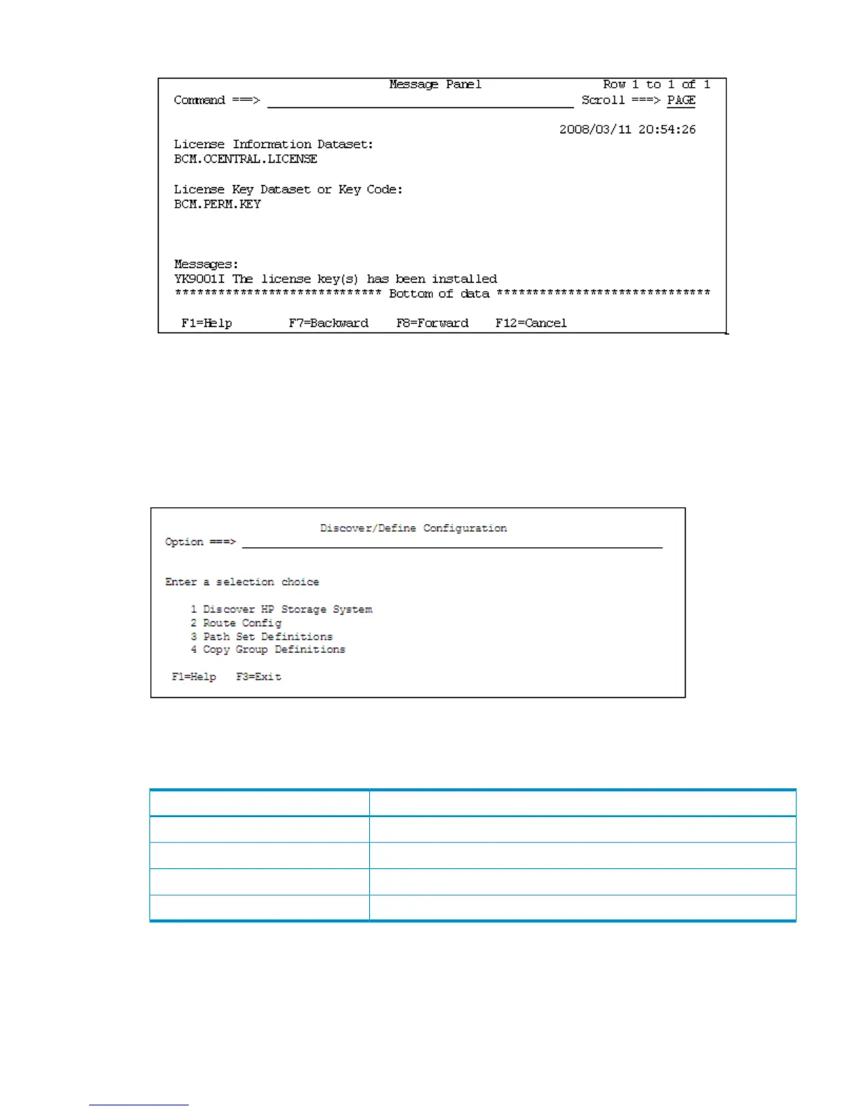 related to volume scans, route list definitions, path set definitions, and copy group definitions.