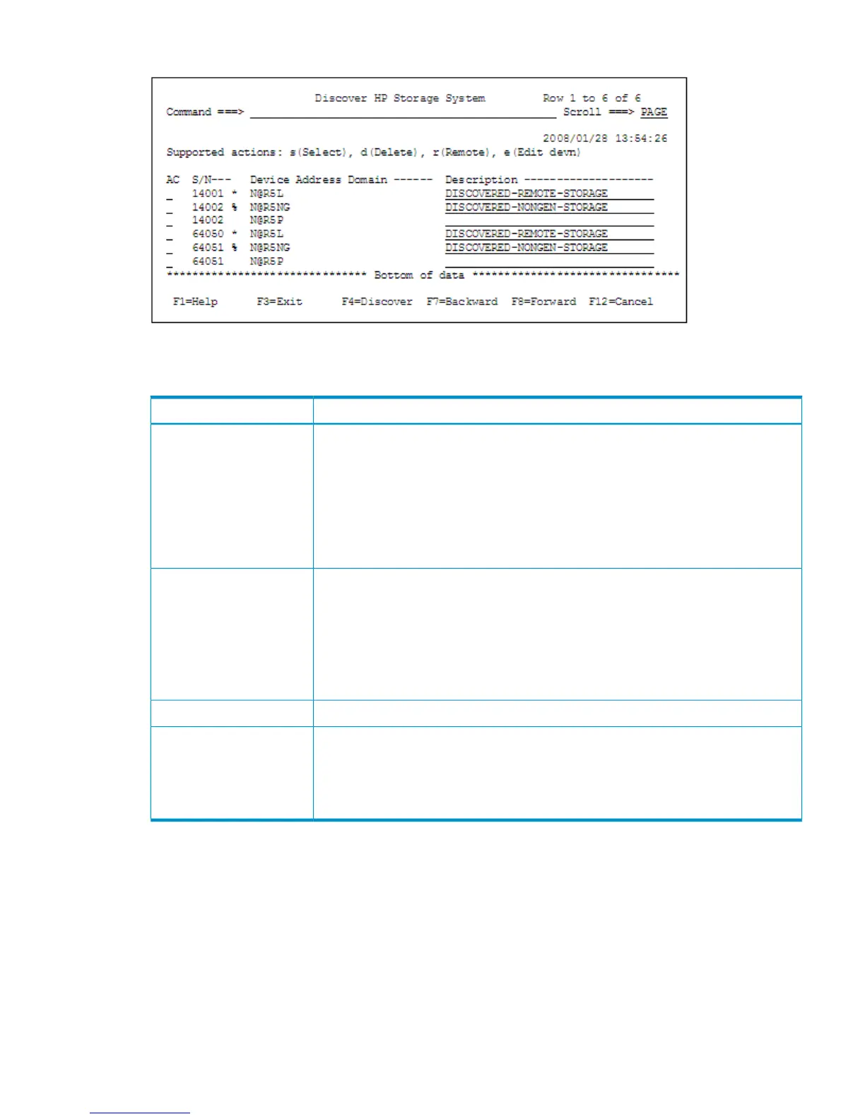 • r: Displays the Scan Remote Device Address Extent panel used to perform a remote