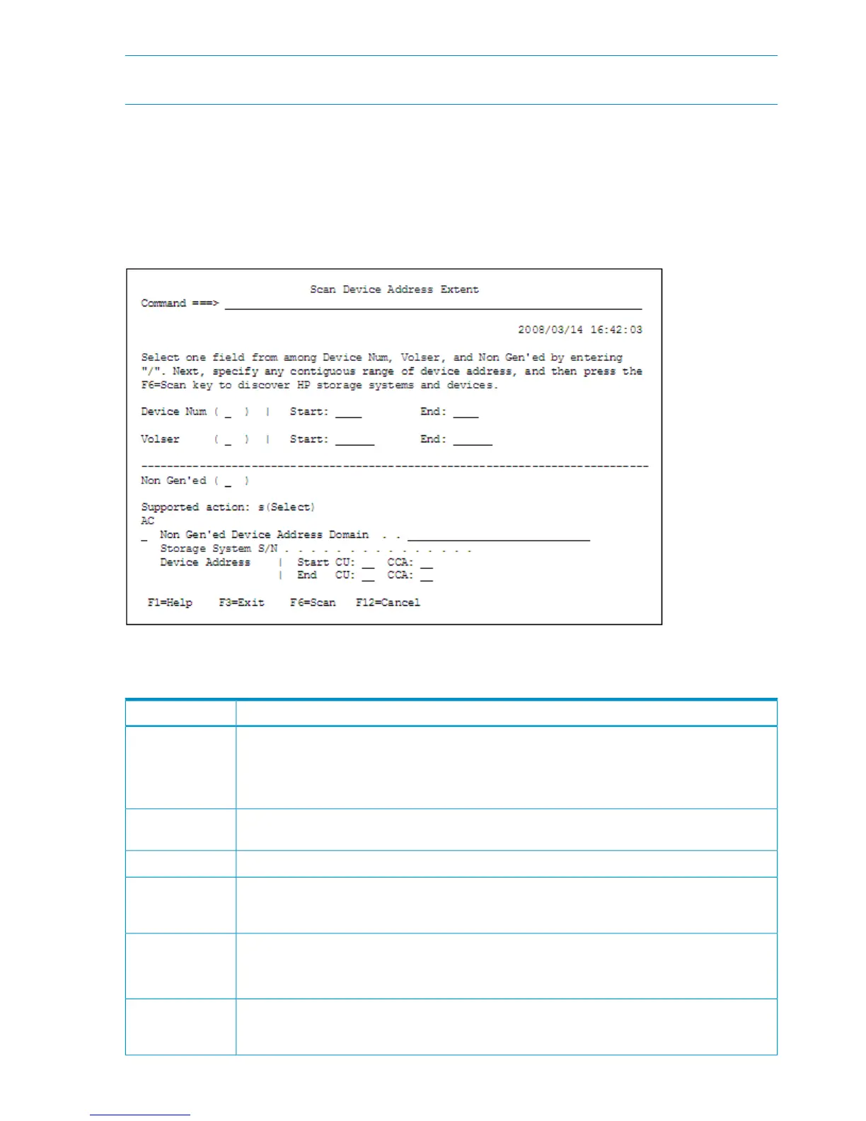 When you press the F4=Discover key in the Discover HP Storage System panel, the Scan Device