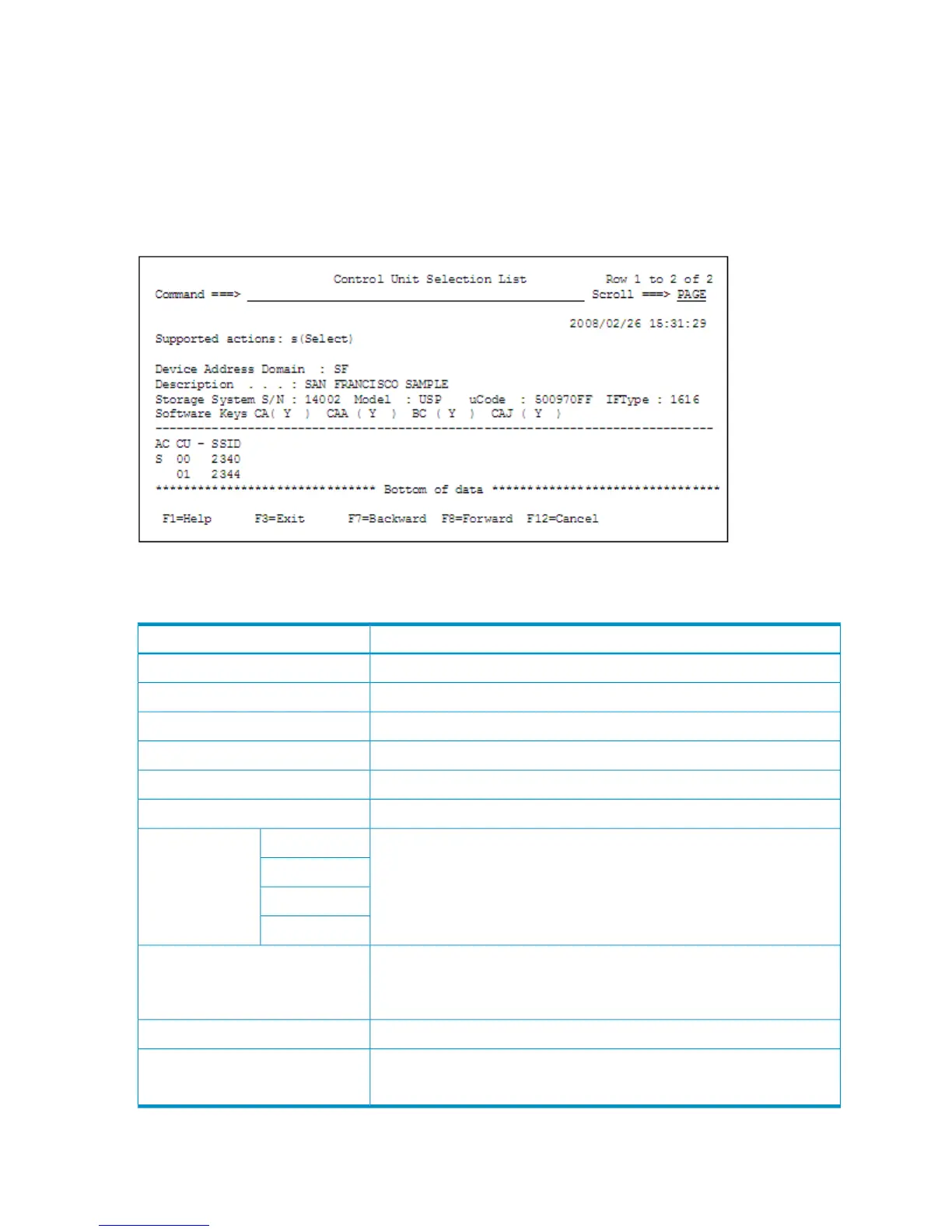 If s is specified in the AC column in the Discover HP Storage System panel, the Control Unit Selection