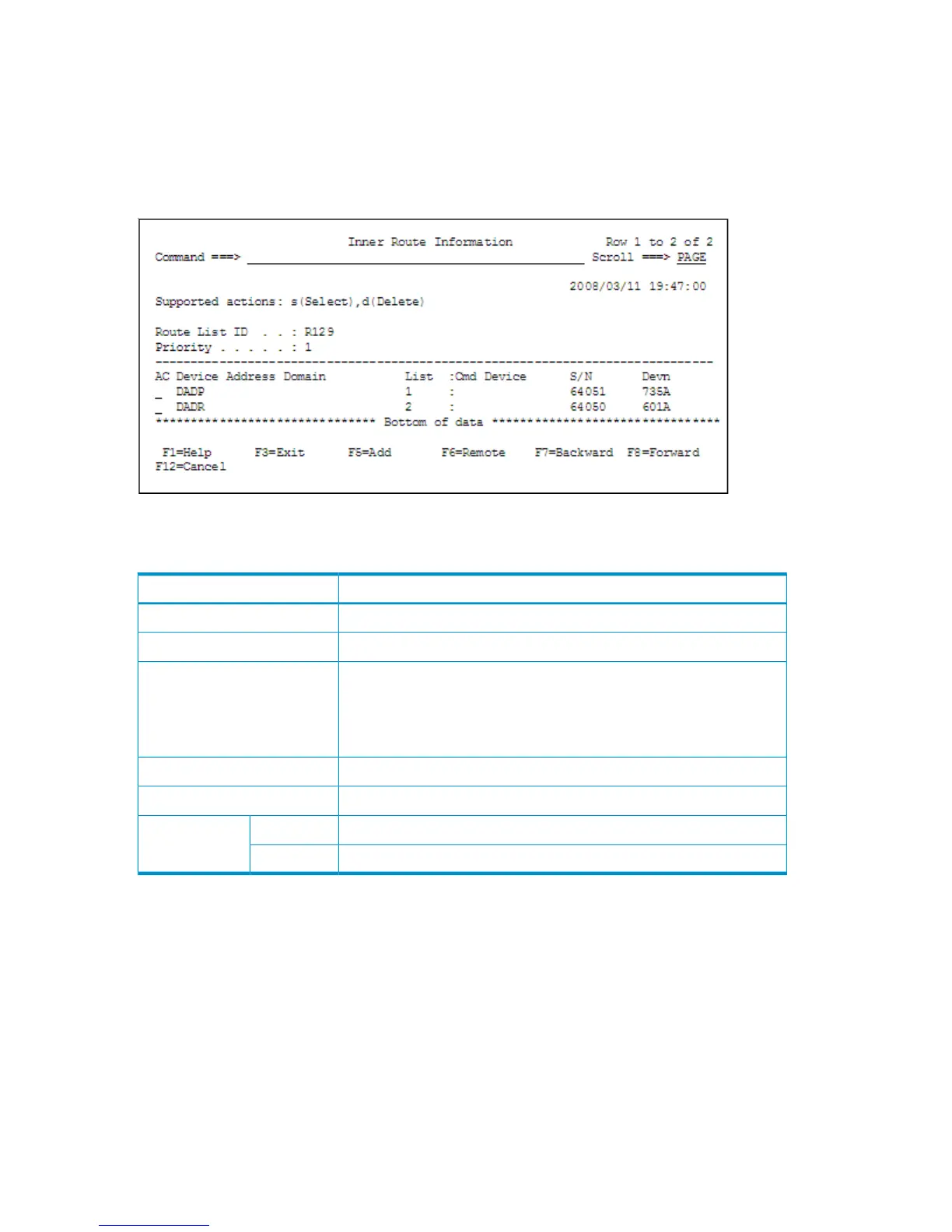 If s is specified in AC in the Route Information panel, the Inner Route Information panel is displayed.