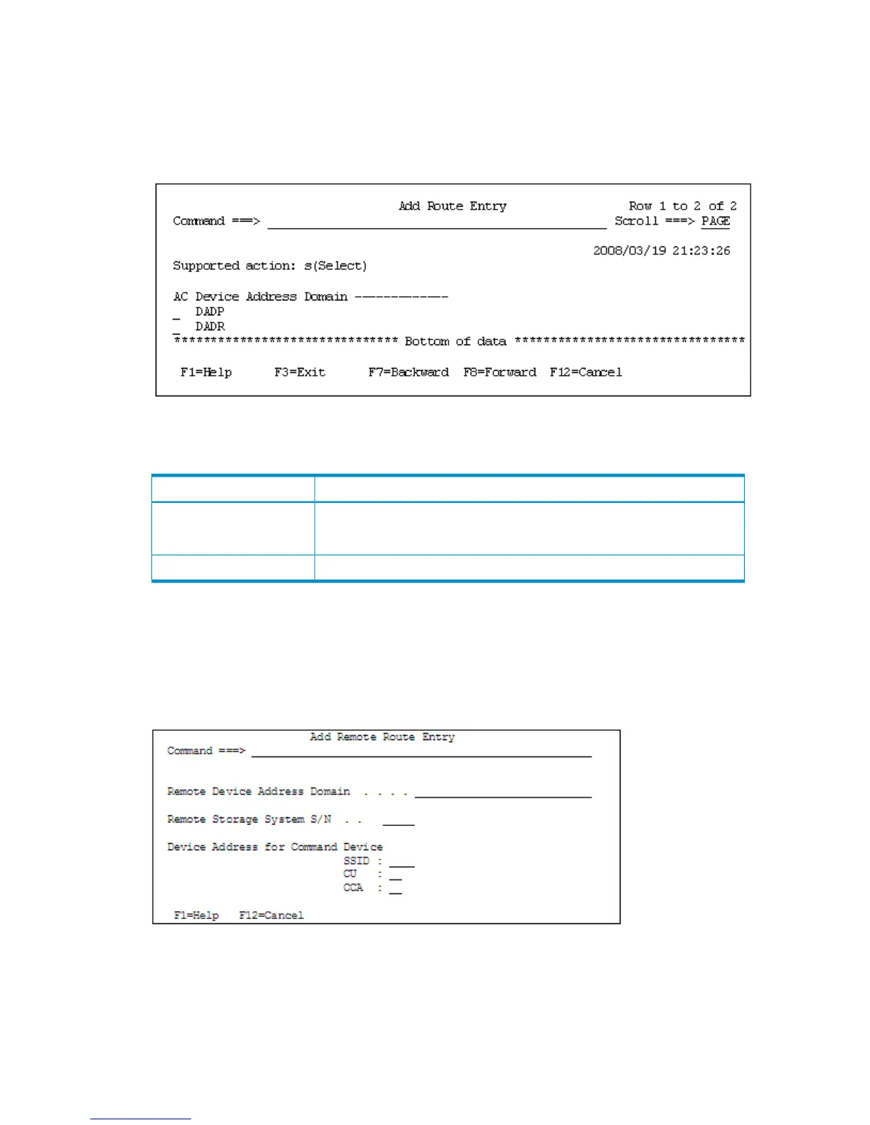 In the Inner Route Information panel, press F6=Remote . The Add Remote Route Entry panel for