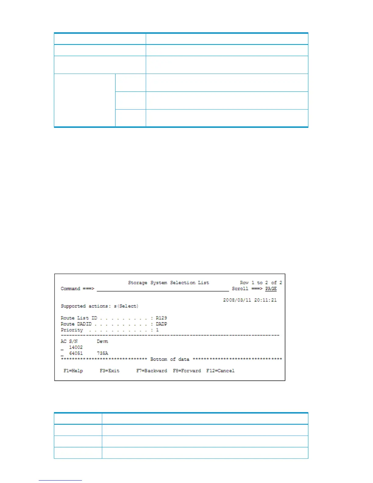 If s is specified in AC in the Inner Route Information panel, the Storage System Selection List panel
