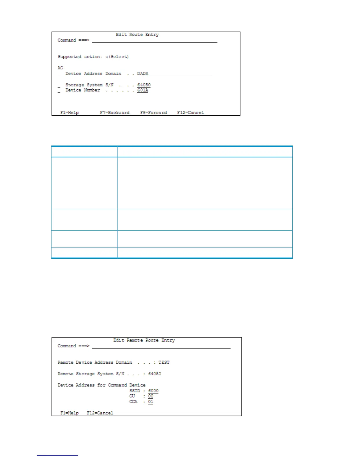 If e is specified for AC in the Entire Route Information panel, then the Edit Remote Route Entry panel