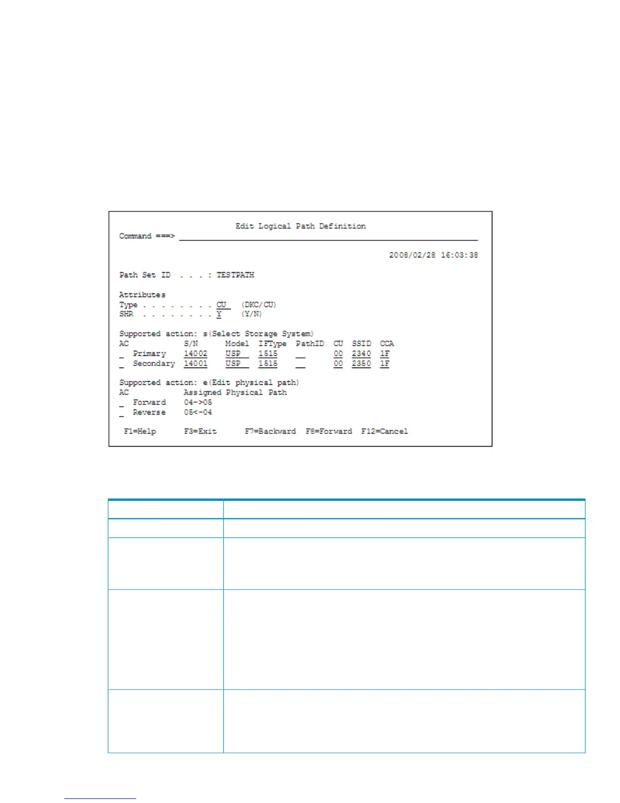 If e is specified in AC in the Path Set Detail panel, the Edit Logical Path Definition panel appears