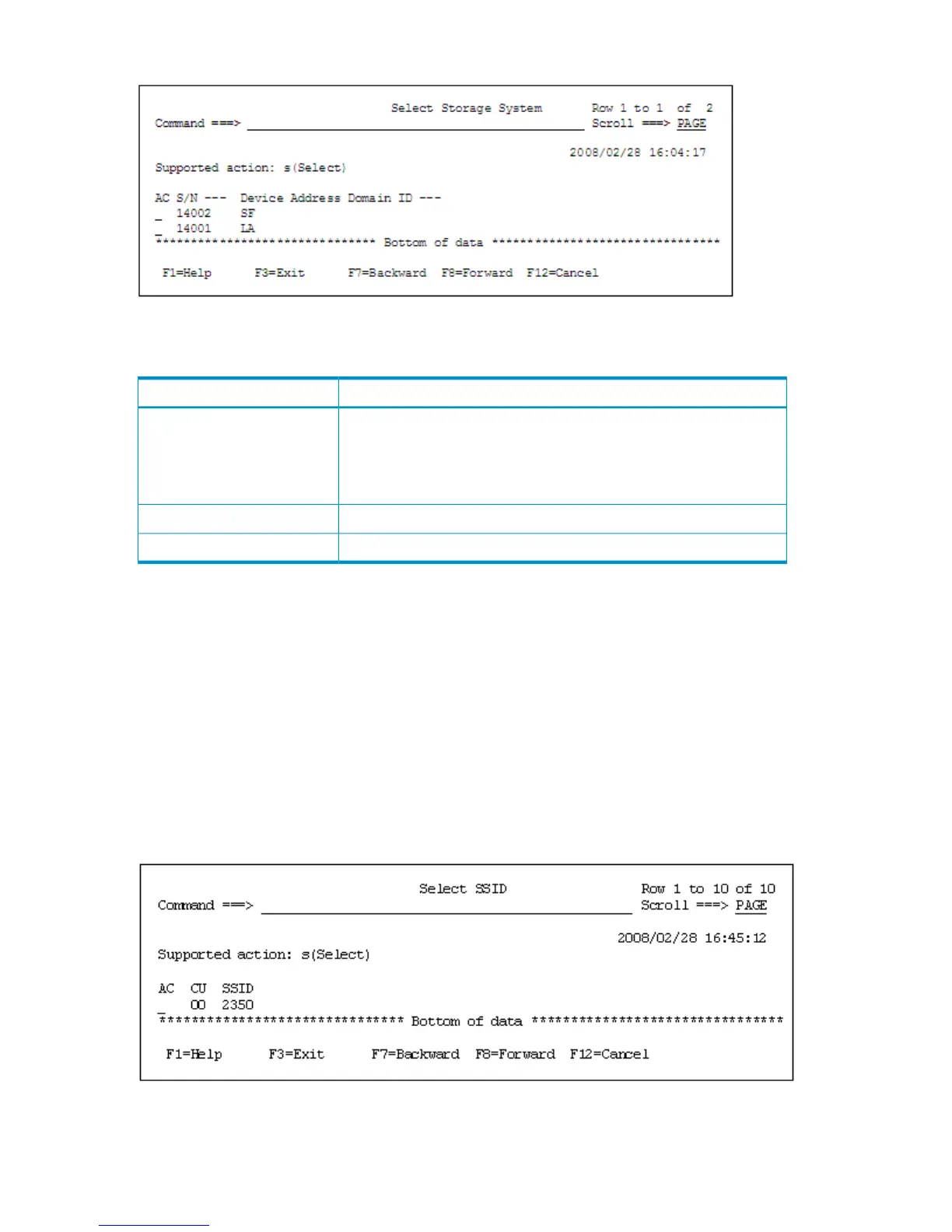 For a CU logical path, if s is specified in the AC column in the Select Storage System panel, the