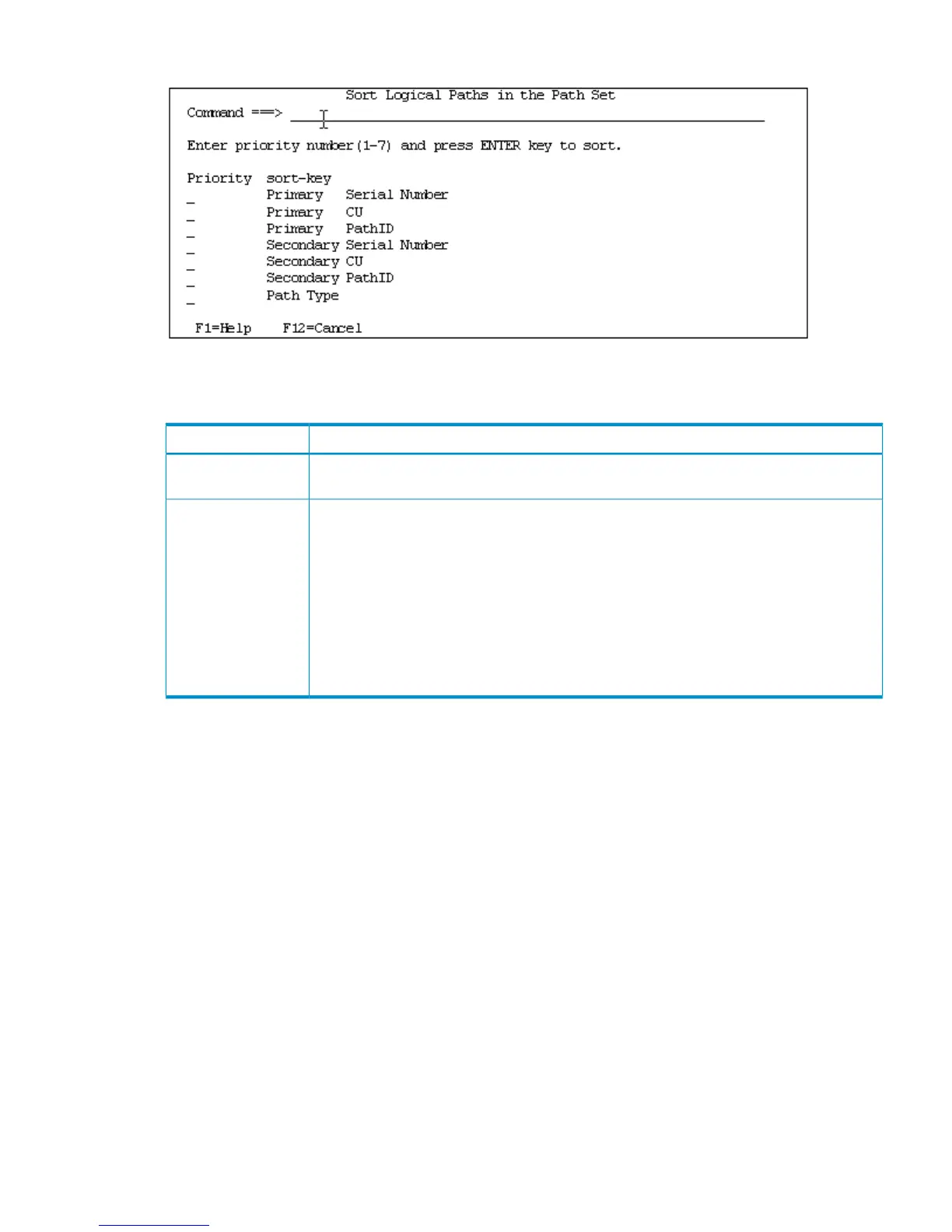 Table 51 (page 69) describes the items in the Sort Logical Paths in the Path Set panel.