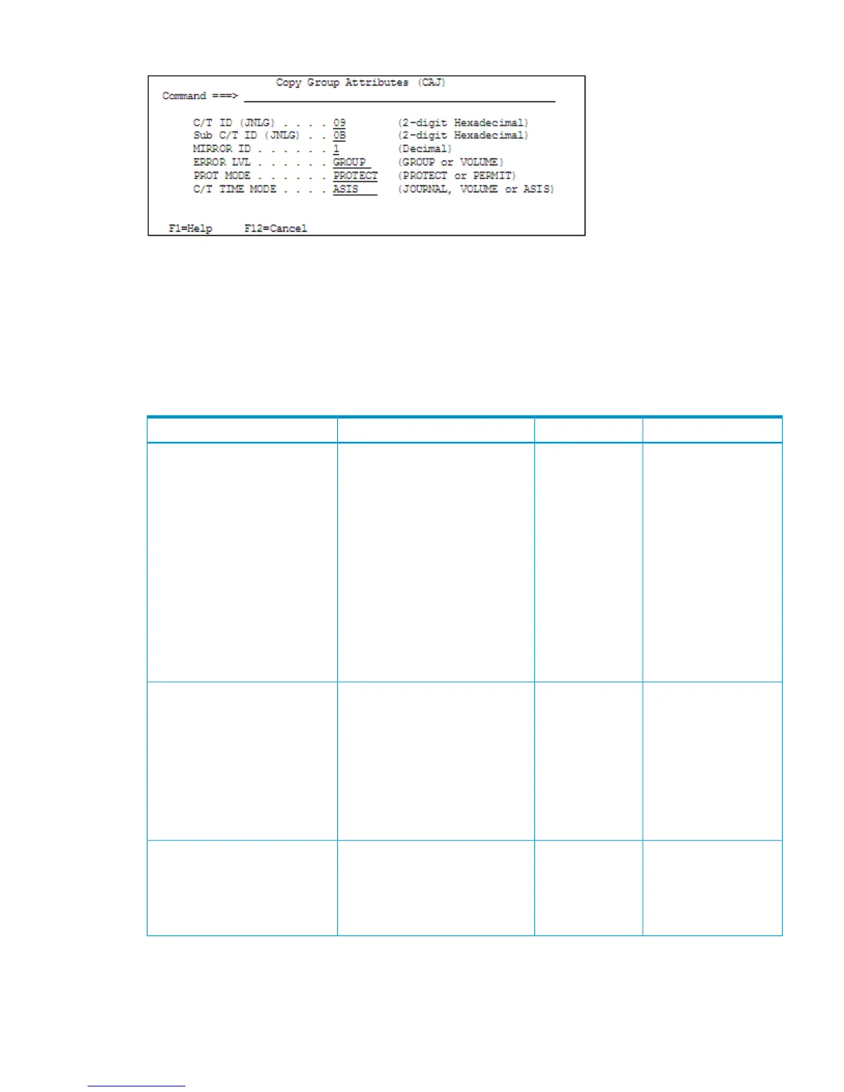 Table 56 (page 79) describes the items in the Copy Group Attributes panel. Note that if you change