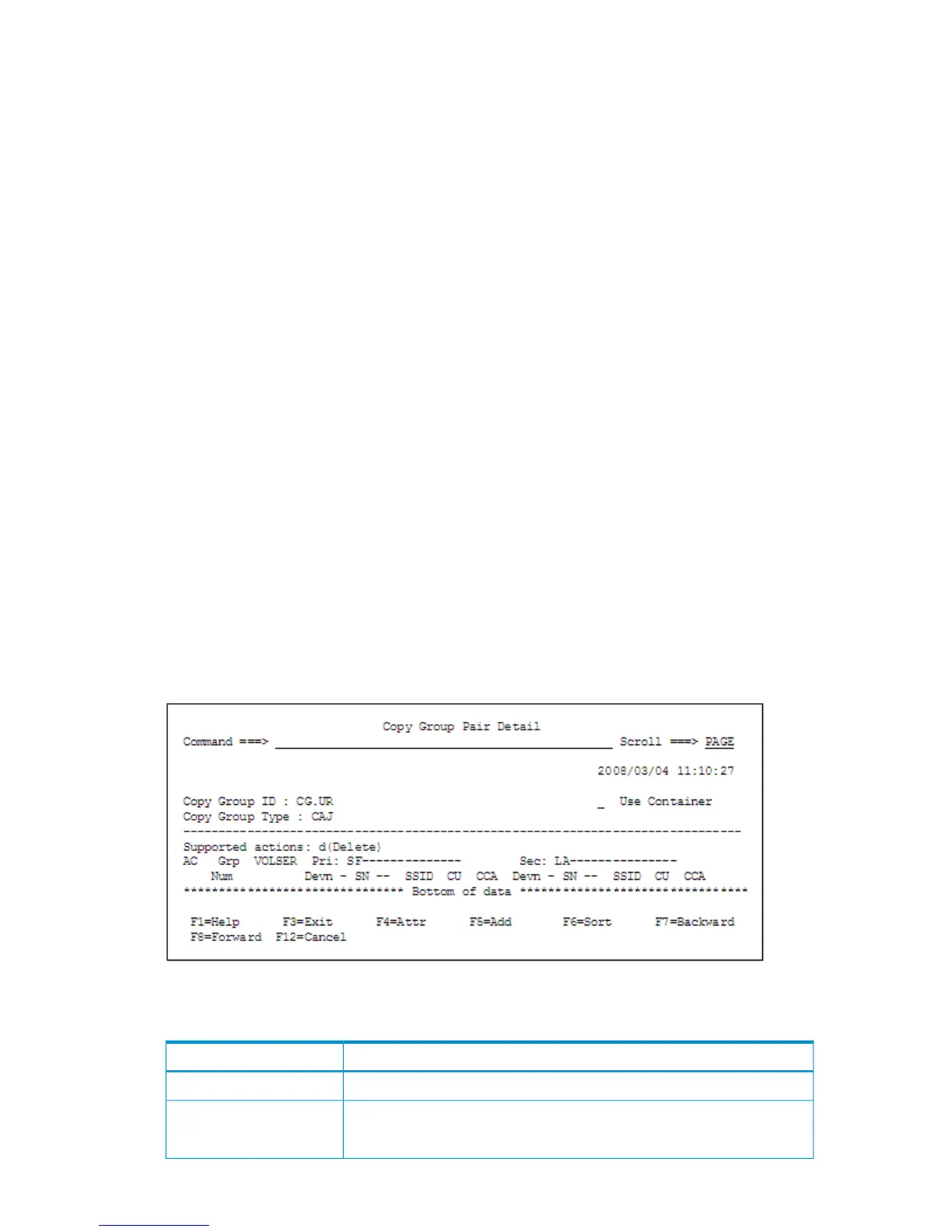 not a CG container, display returns to the Copy Group Selection List panel. If the copy group is a