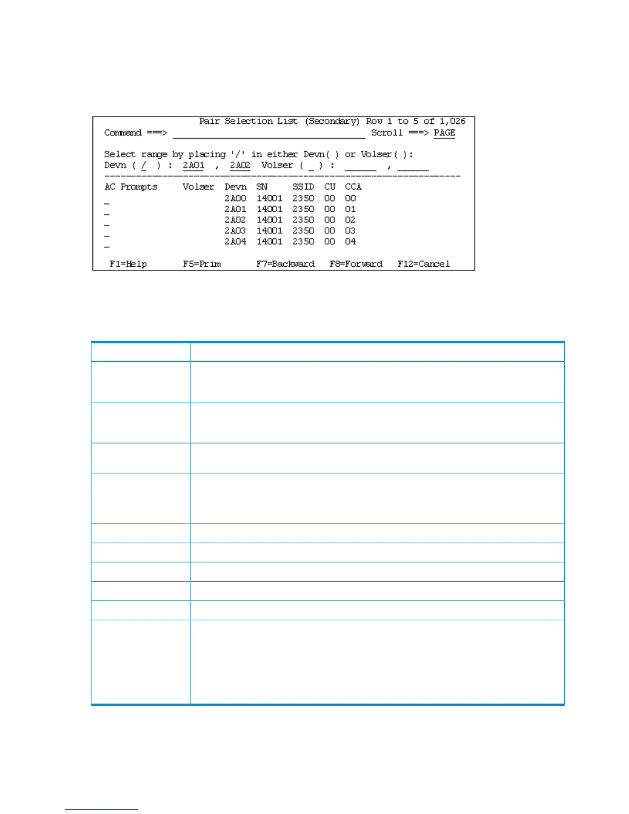Figure 79 (page 92) shows the Pair Selection List (Secondary) Panel.