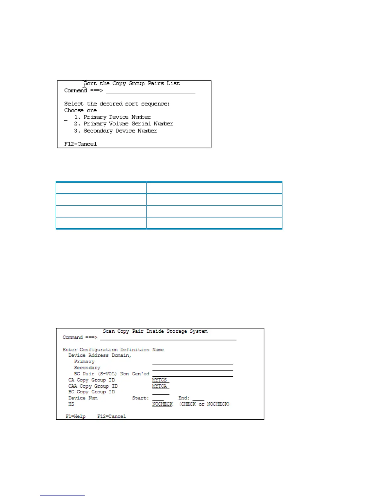 Figure 81 (page 94) shows the Sort the Copy Group Pairs List panel.