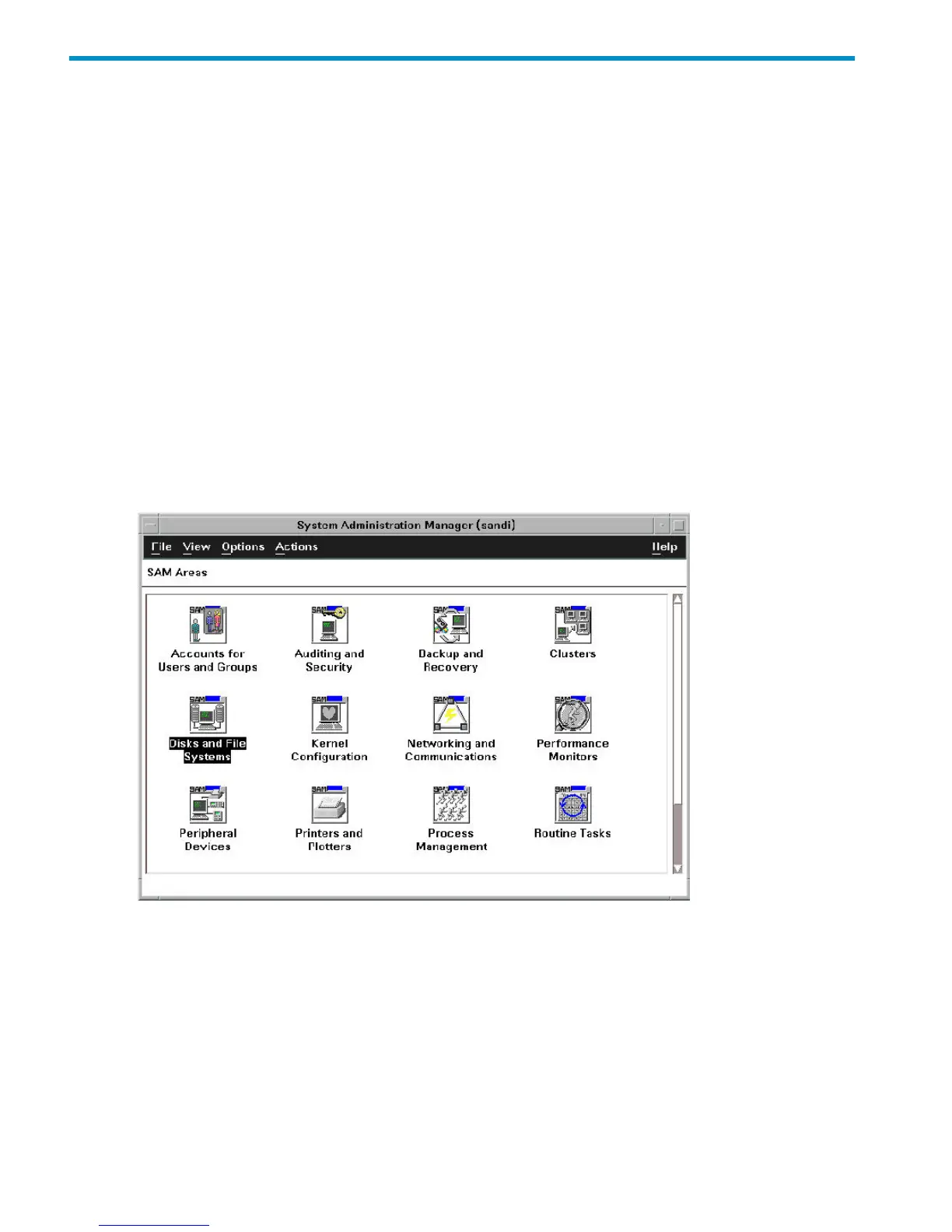 The HP System Administration Manager (SAM) is used to perform HP-UX system administration