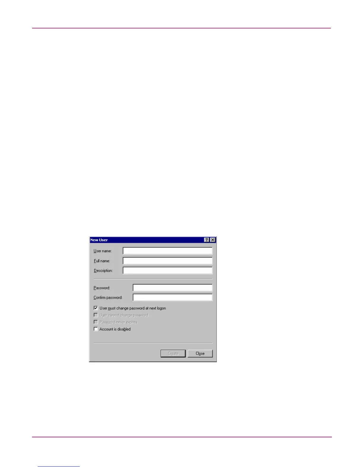 3. Enter the user information, including the user's User name, Full name, Description, and