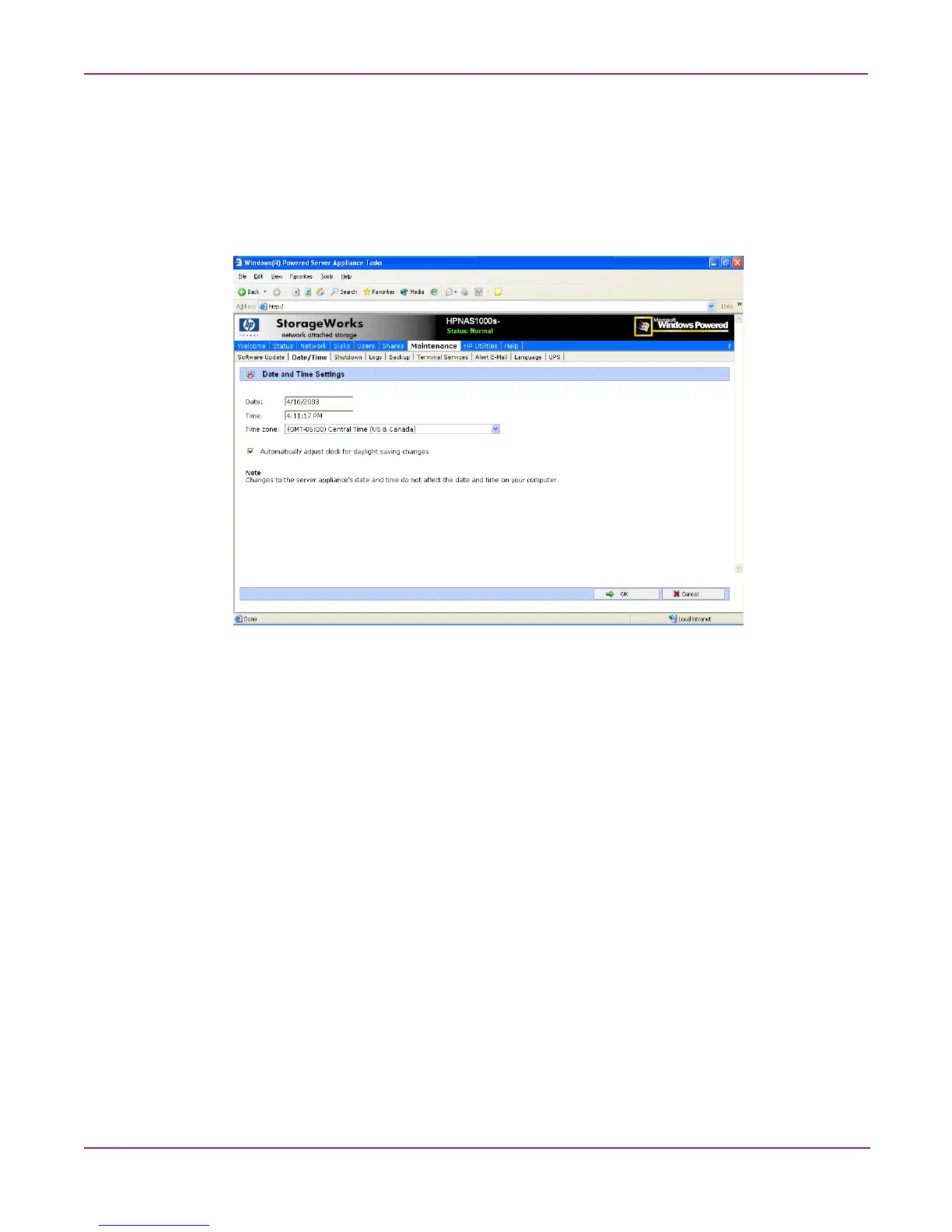 1. From the WebUI, select Maintenance and Date/Time. The Date and Time Settings