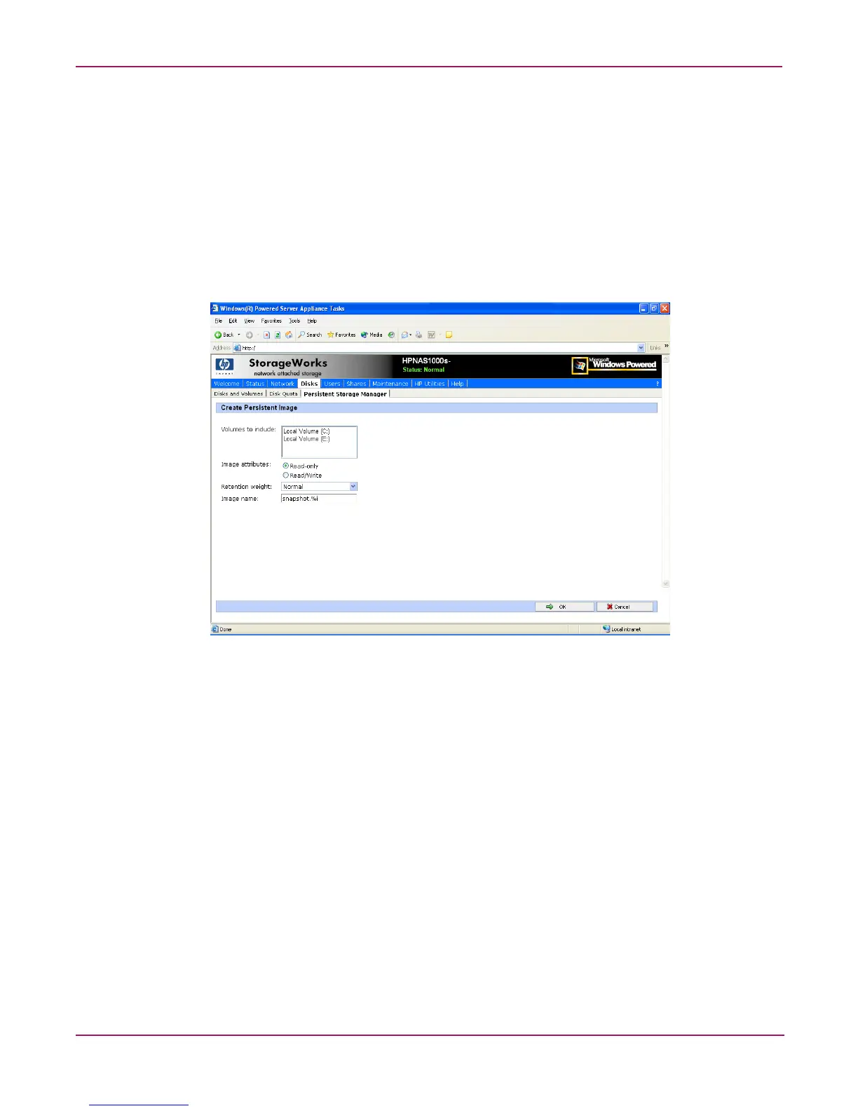 Snapshots may be created directly through the Persistent Images page. You can also use the