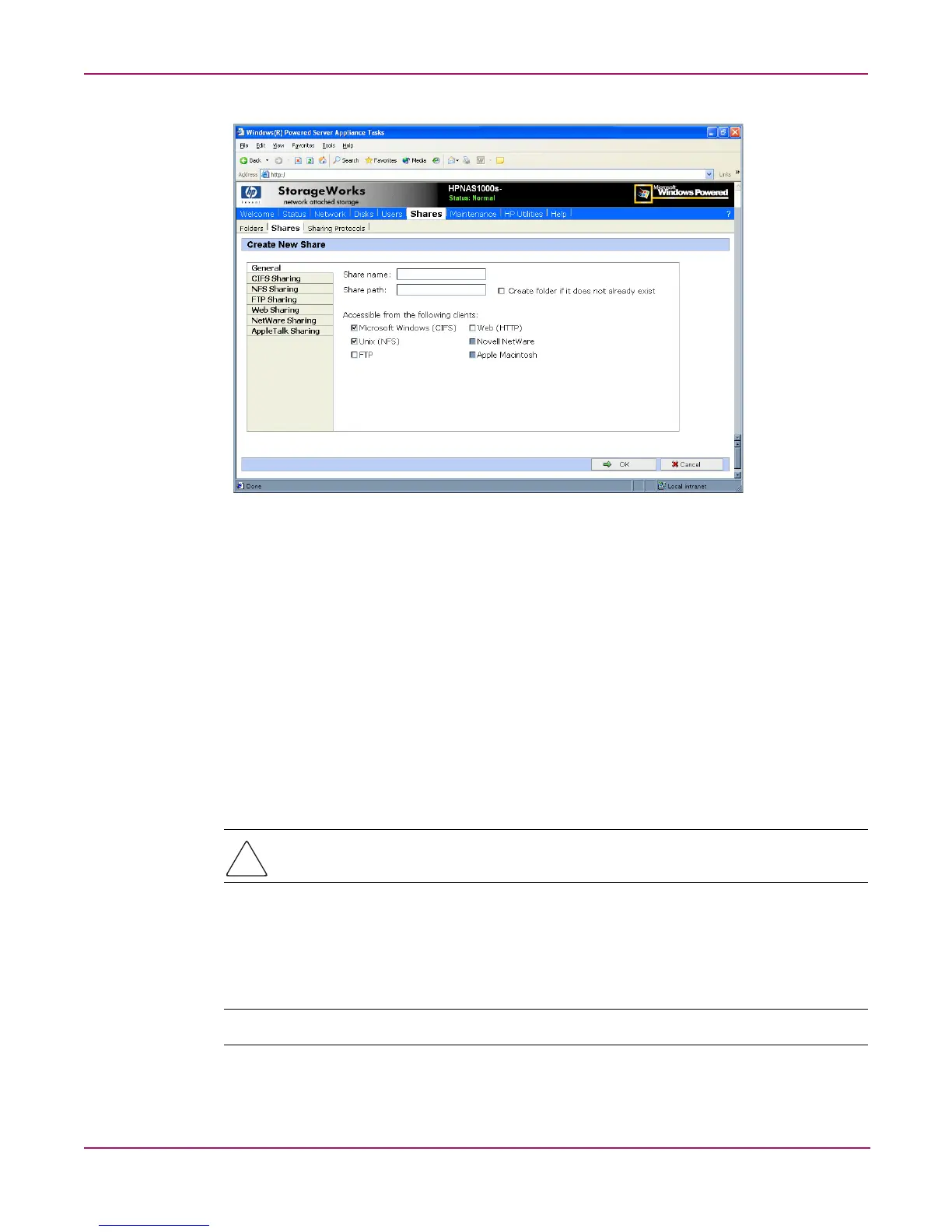 Figure 50: Create a New Share dialog box, General tab