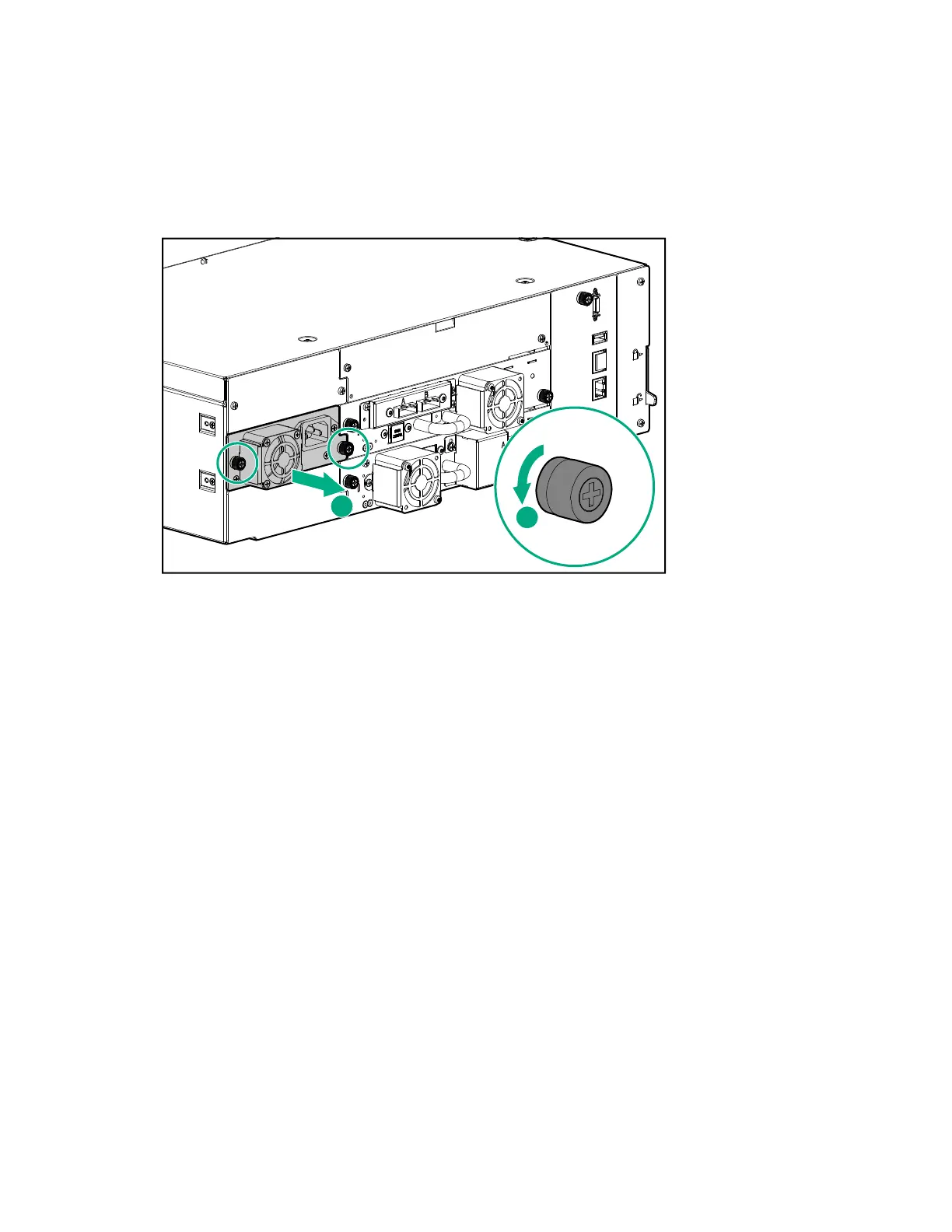 2. Loosen the two blue captive thumbscrews on the power supply with your fingers or a #2 Phillips