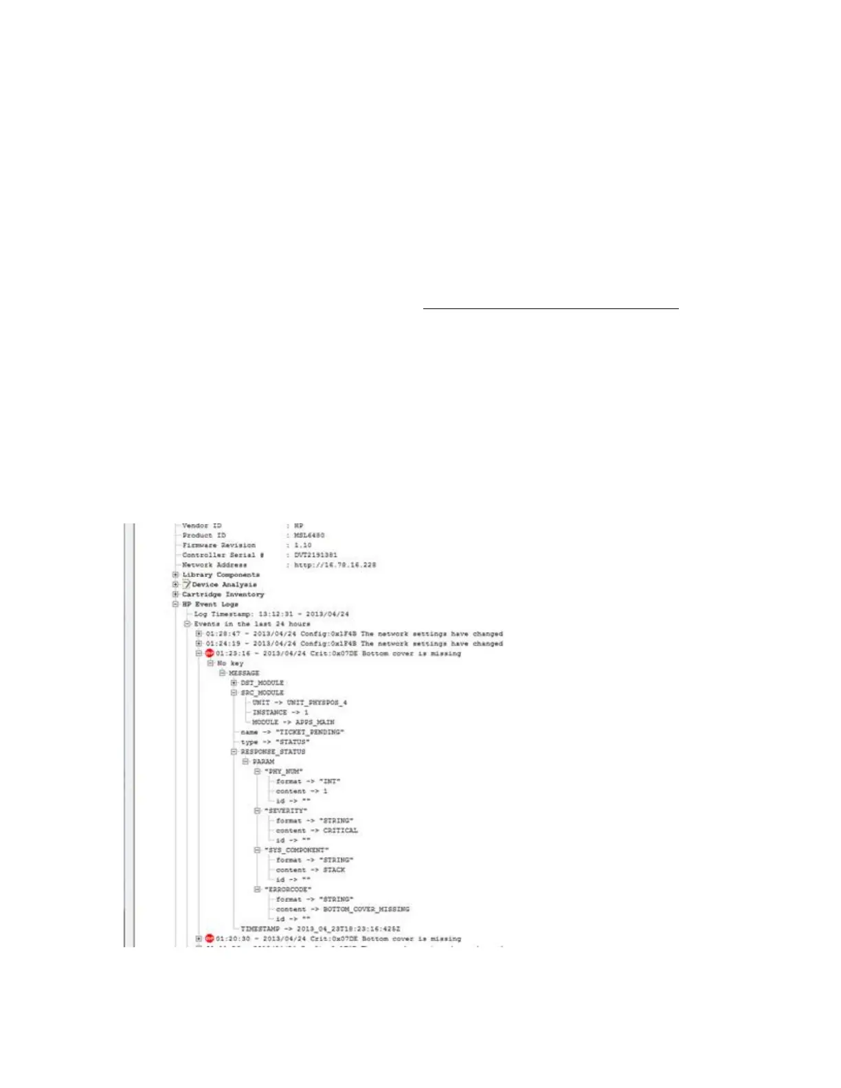 An L&TT support ticket or report contains detailed information about the device configuration, along with
