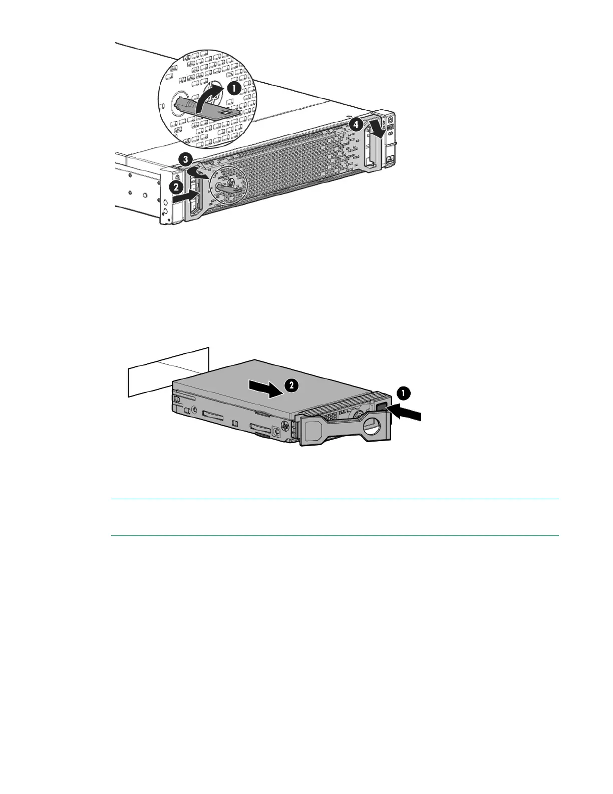 NOTE: The illustration above shows disk removal in a StoreOnce appliance’s server unit. The disk