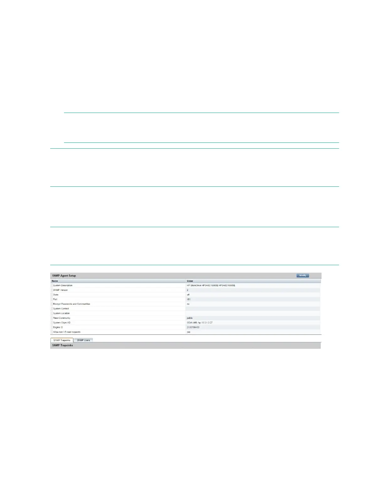 During initial configuration, use the top half of the page to modify SNMP Agent details.