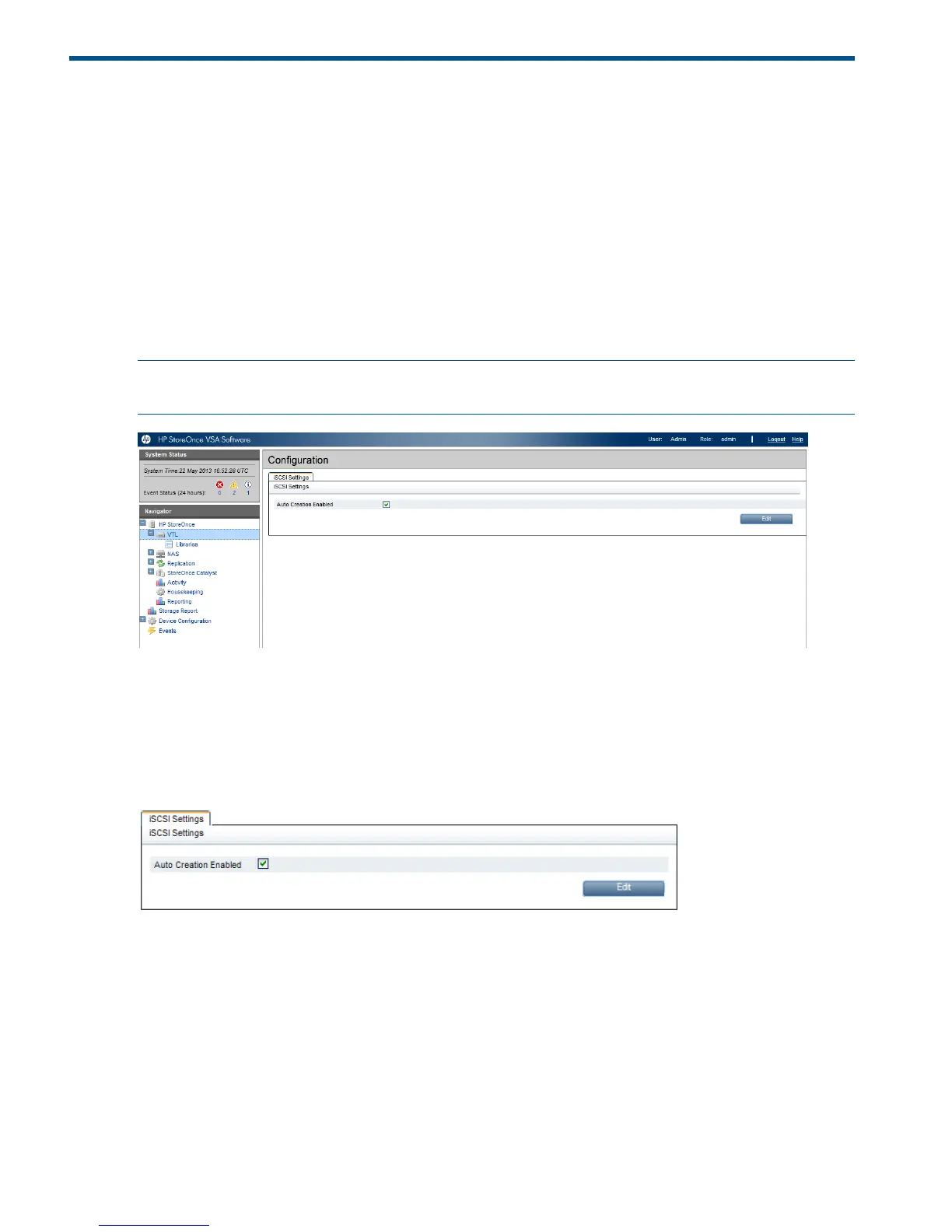 StoreOnce Backup system using the iSCSI initiator. Users with an Admin login may use this page