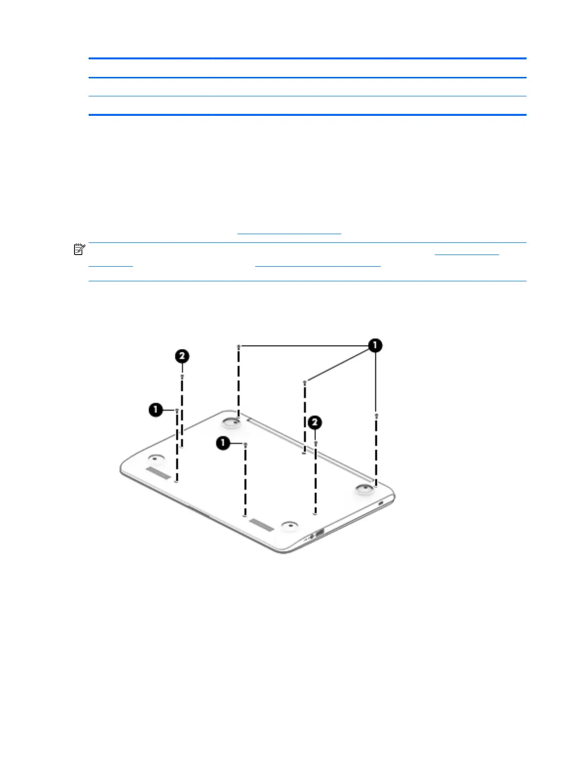4. Insert a case utility tool (1) or similar thin, plastic tool between the front edge of the keyboard/top cover