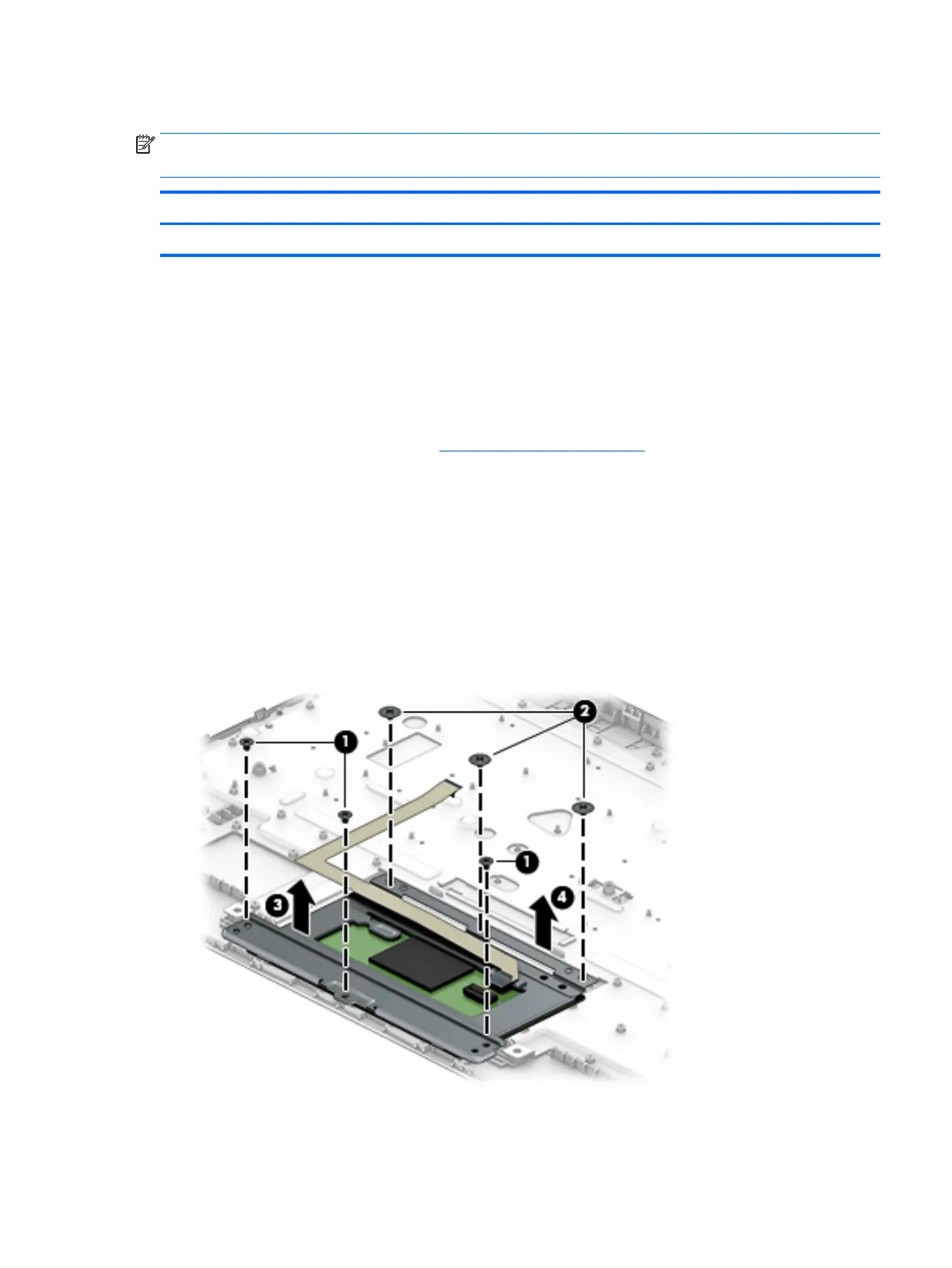 NOTE: The TouchPad board spare part kit does not include the TouchPad board cable. The TouchPad board