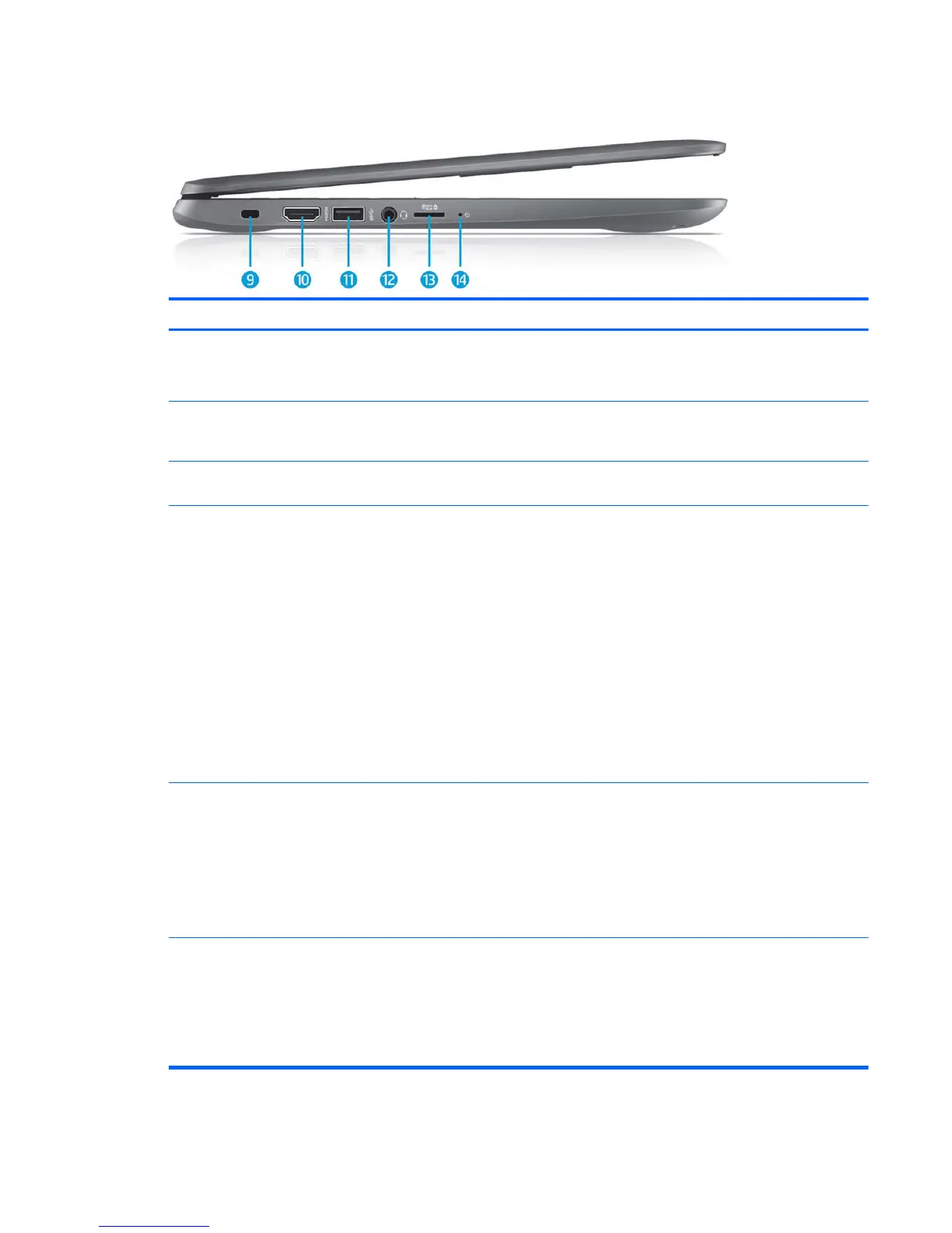 (10) HDMI port Connects an optional video or audio device, such as a