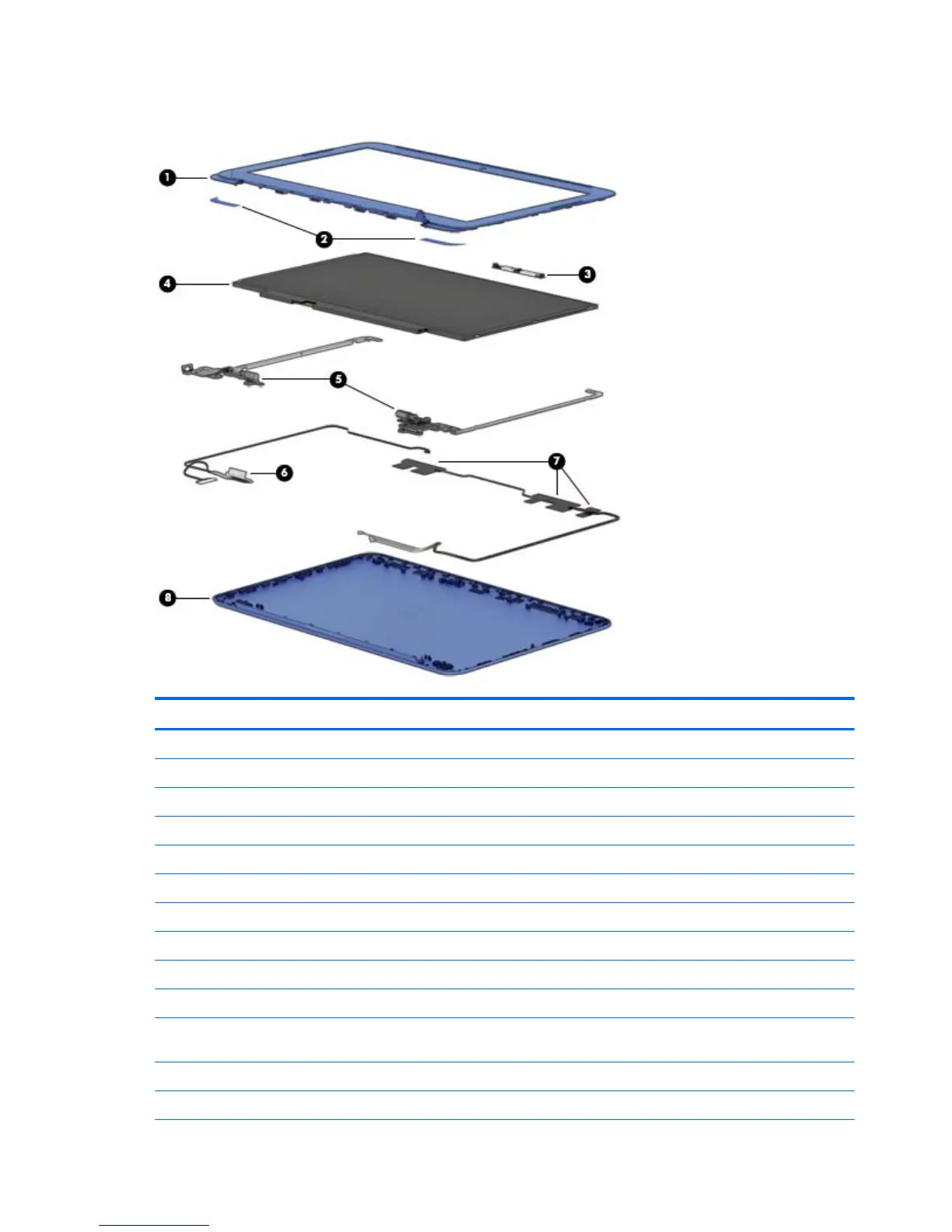 (2) Display bezel screw covers: The display bezel screw covers are included in all display spare part kits.