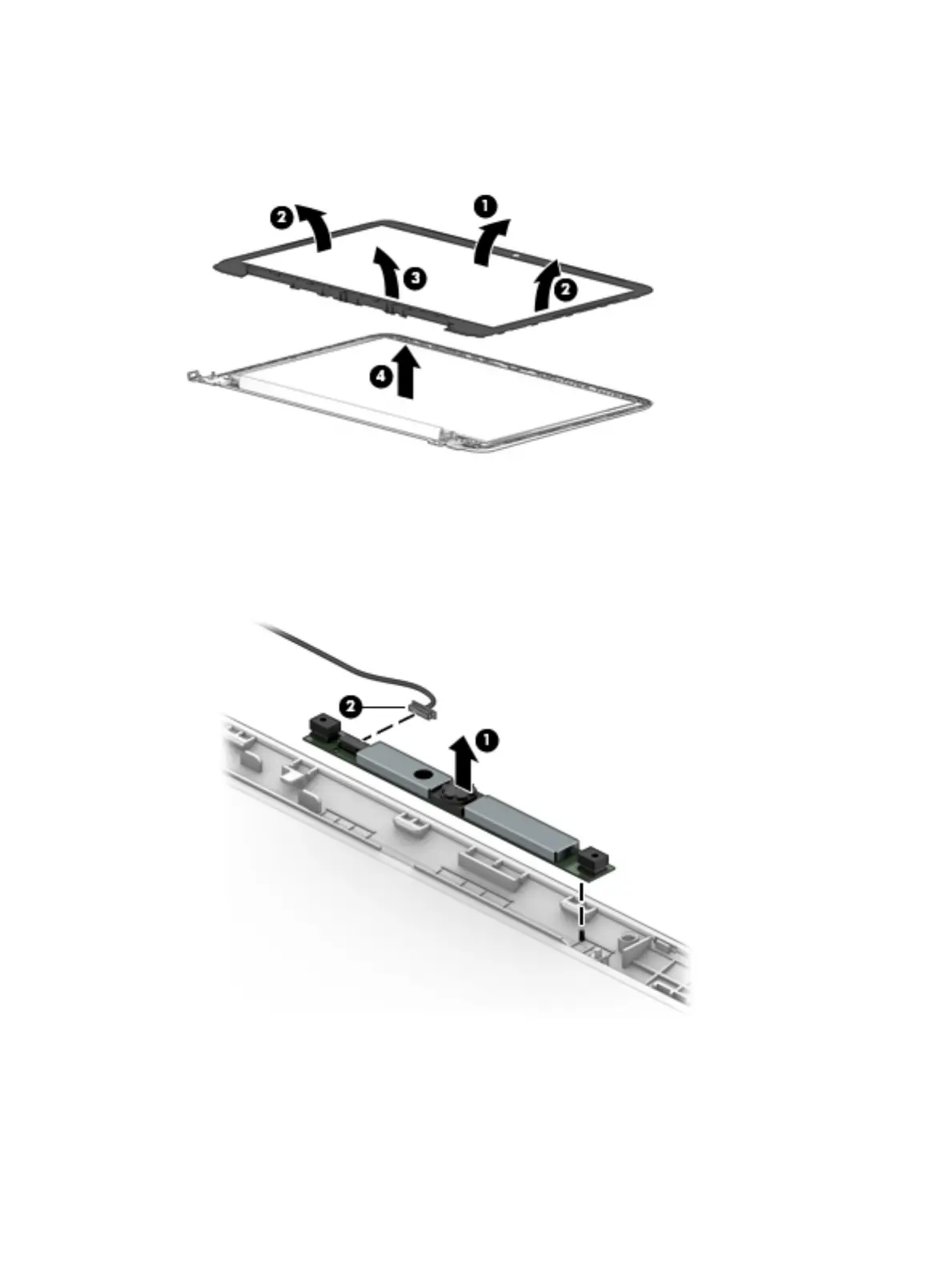 a. Detach and lift the module (1) from the display back cover. (The webcam/microphone module is