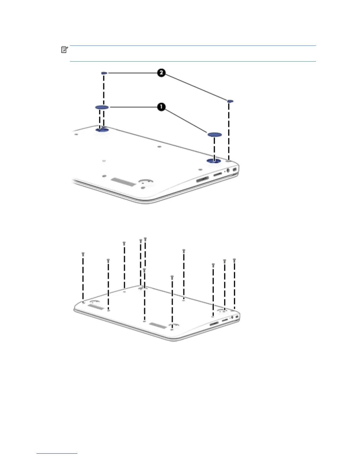 NOTE: The rubber feet and screw covers are included in the Rubber Kit, spare part number