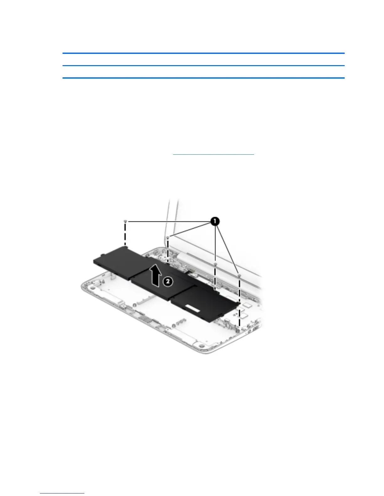 1. Remove the four Phillips PM1.9×3.3 screws (1) that secure the battery to the base enclosure.
