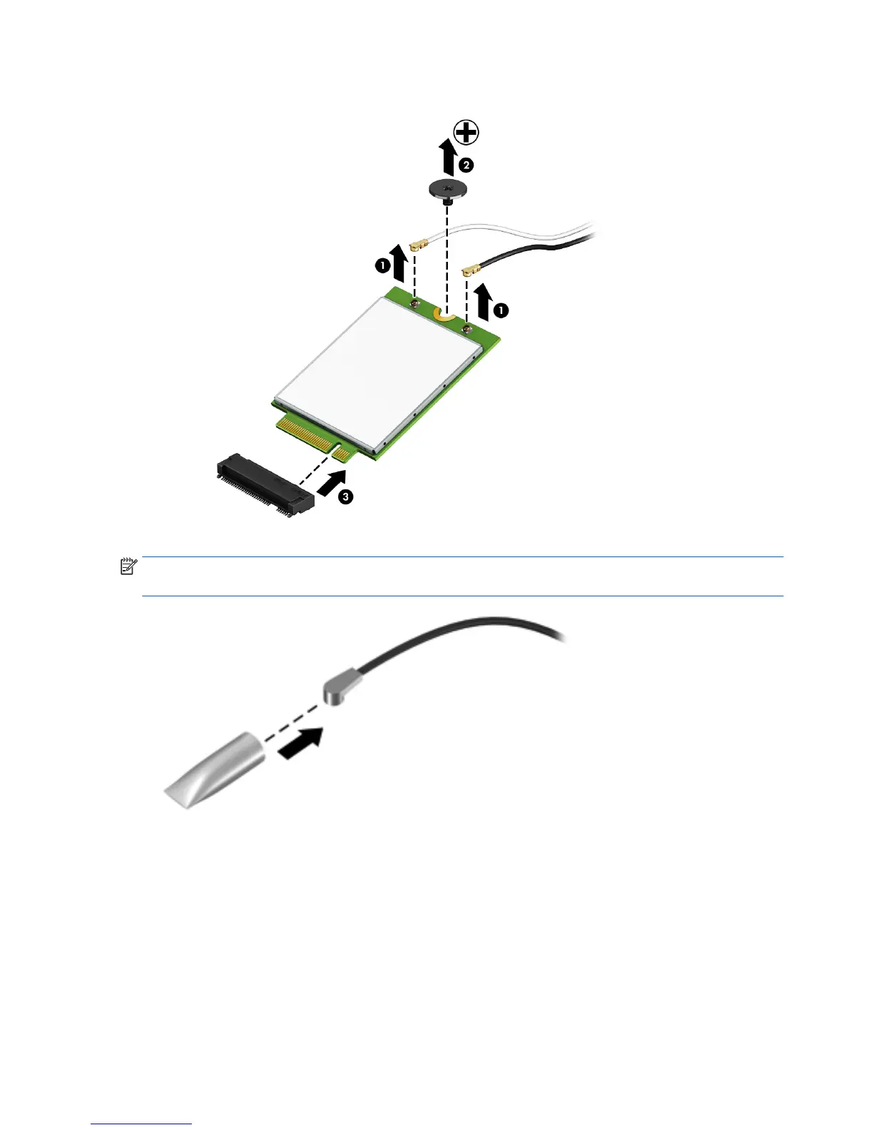 NOTE: If the WWAN antenna is not connected to the terminal on the WWAN module, a protective sleeve