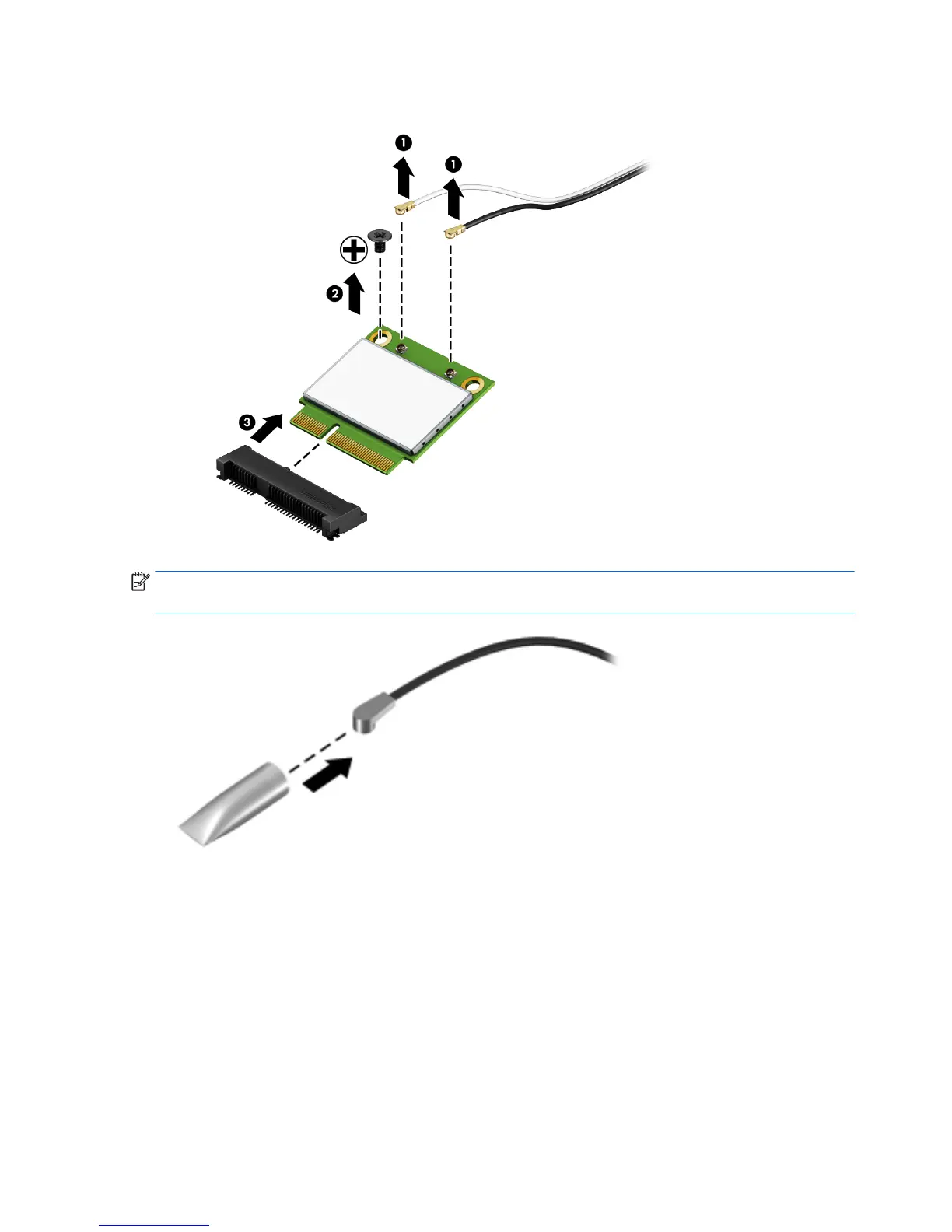 NOTE: If the WLAN antenna is not connected to the terminal on the WLAN module, a protective sleeve