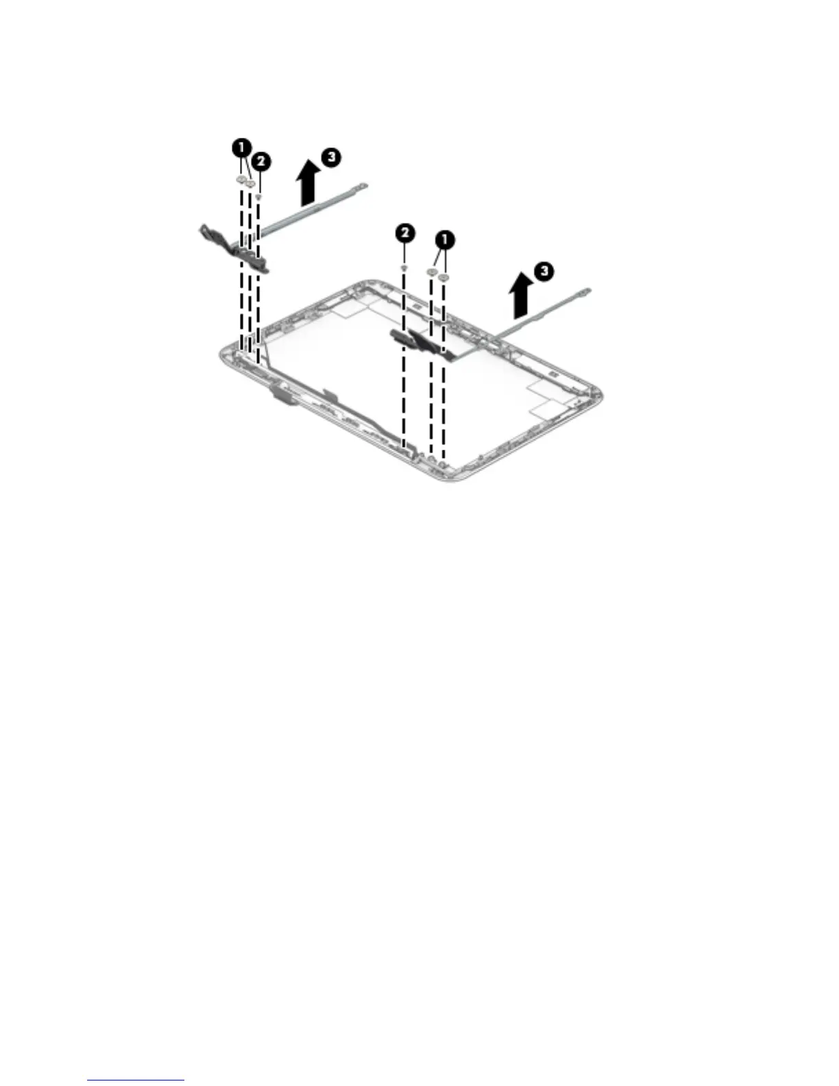 d. Remove the display hinges (3).