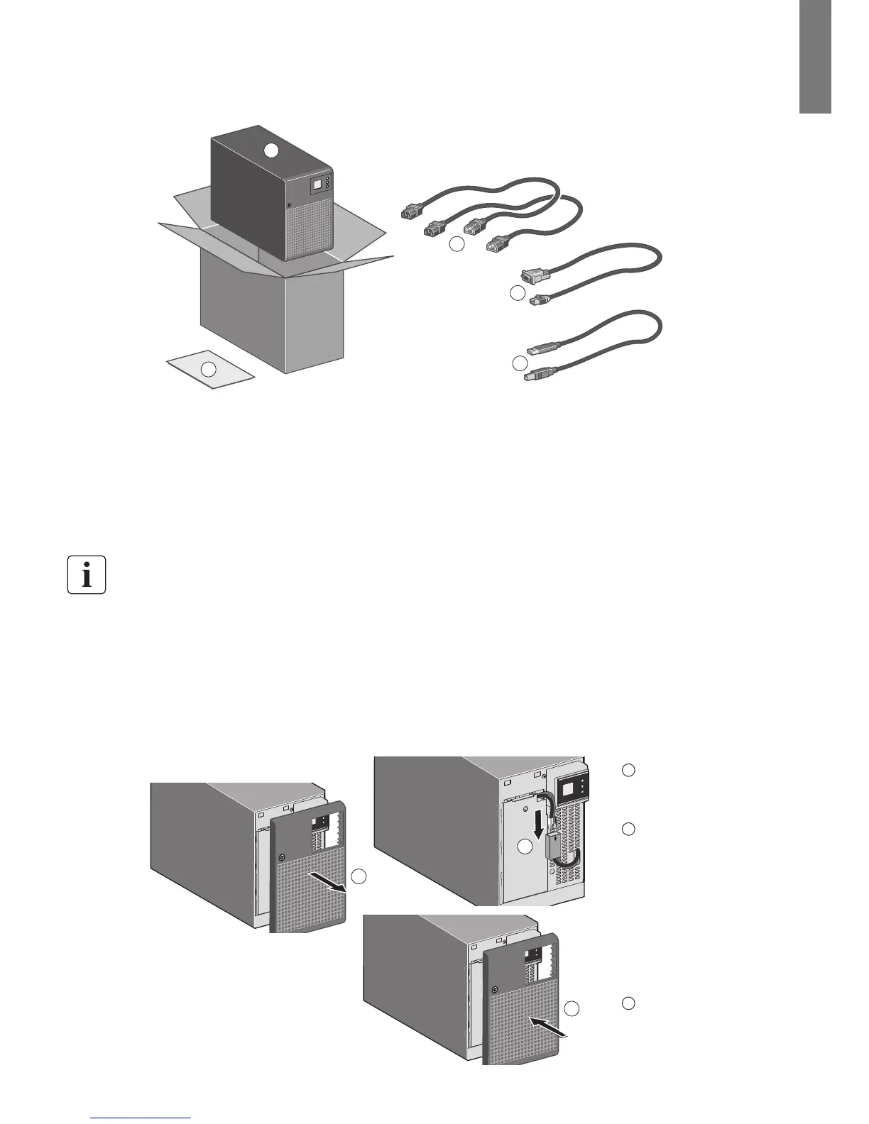 (4) Two connection cables for protected equipment (HP T750 G4 INTL UPS, HP T1000 G4 INTL UPS, HP T1500 G4 INTL UPS)