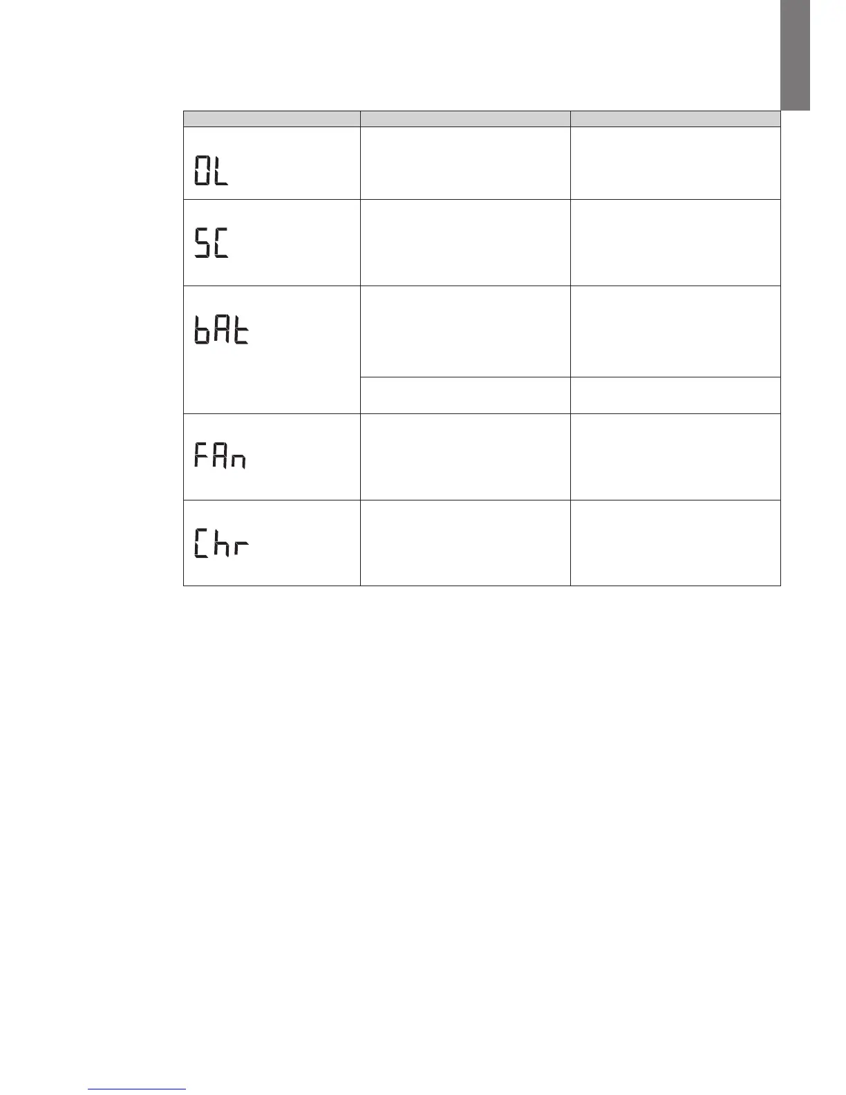 Charger fault The UPS has a charger fault. The UPS does not charge the