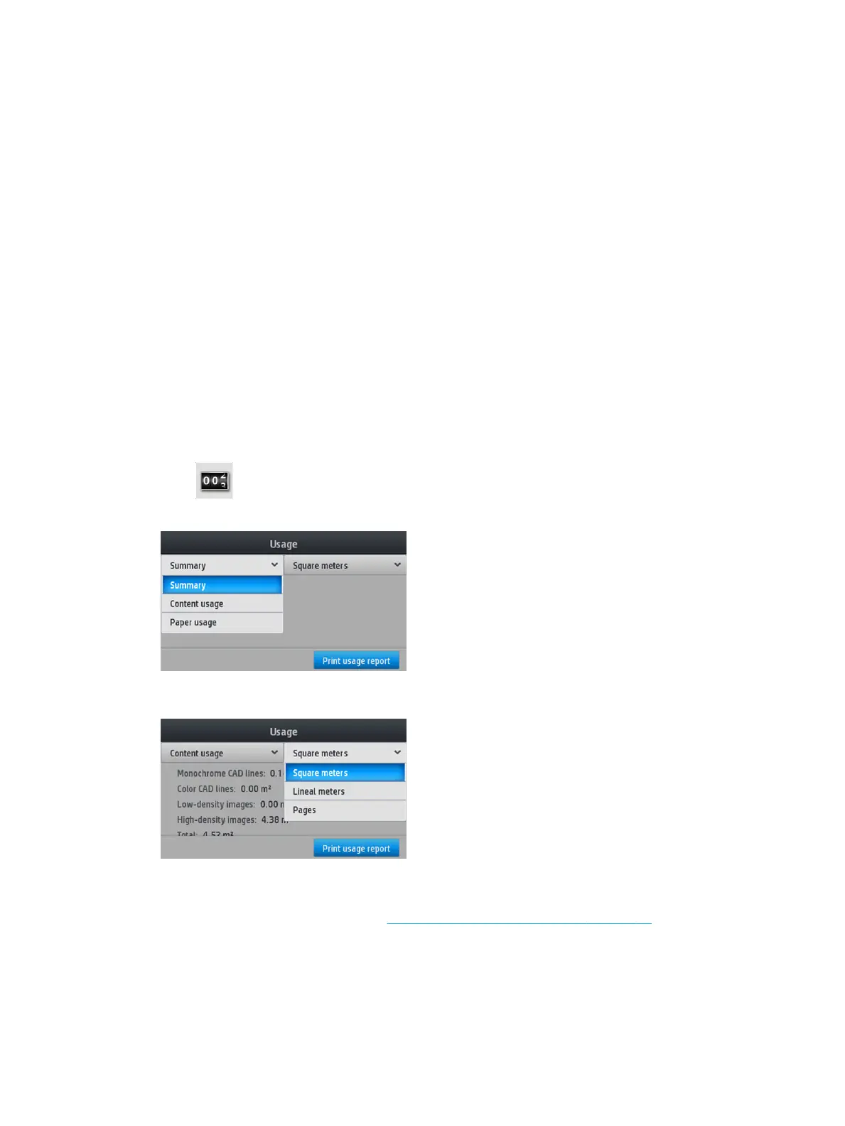 Accumulated usage information: information about the usage of different consumables (media and ink)