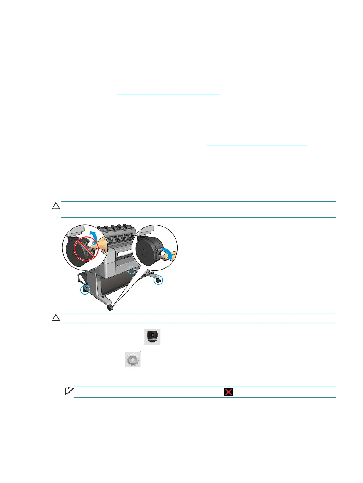 CAUTION: Make sure the printer wheels are locked (the brake lever is pressed down) to prevent the printer