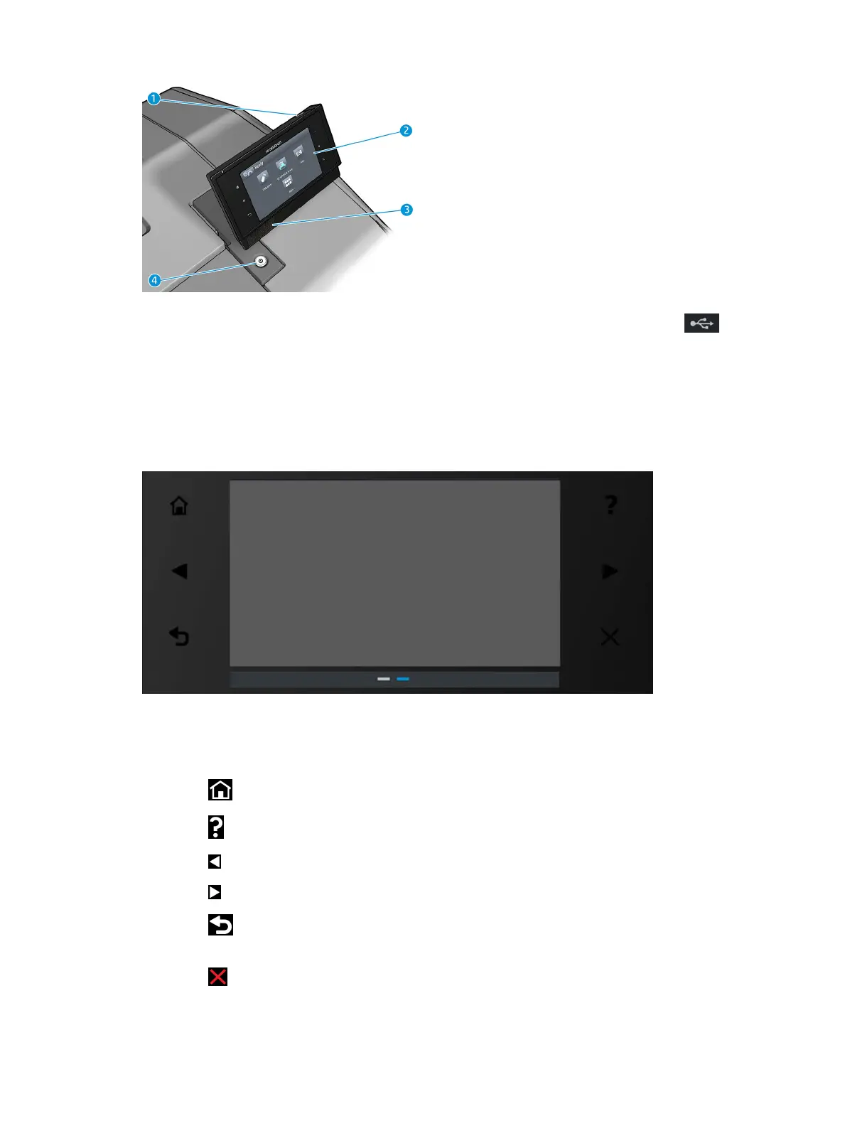 printed or a destination for scanned files. When a USB flash drive is inserted, a USB icon is