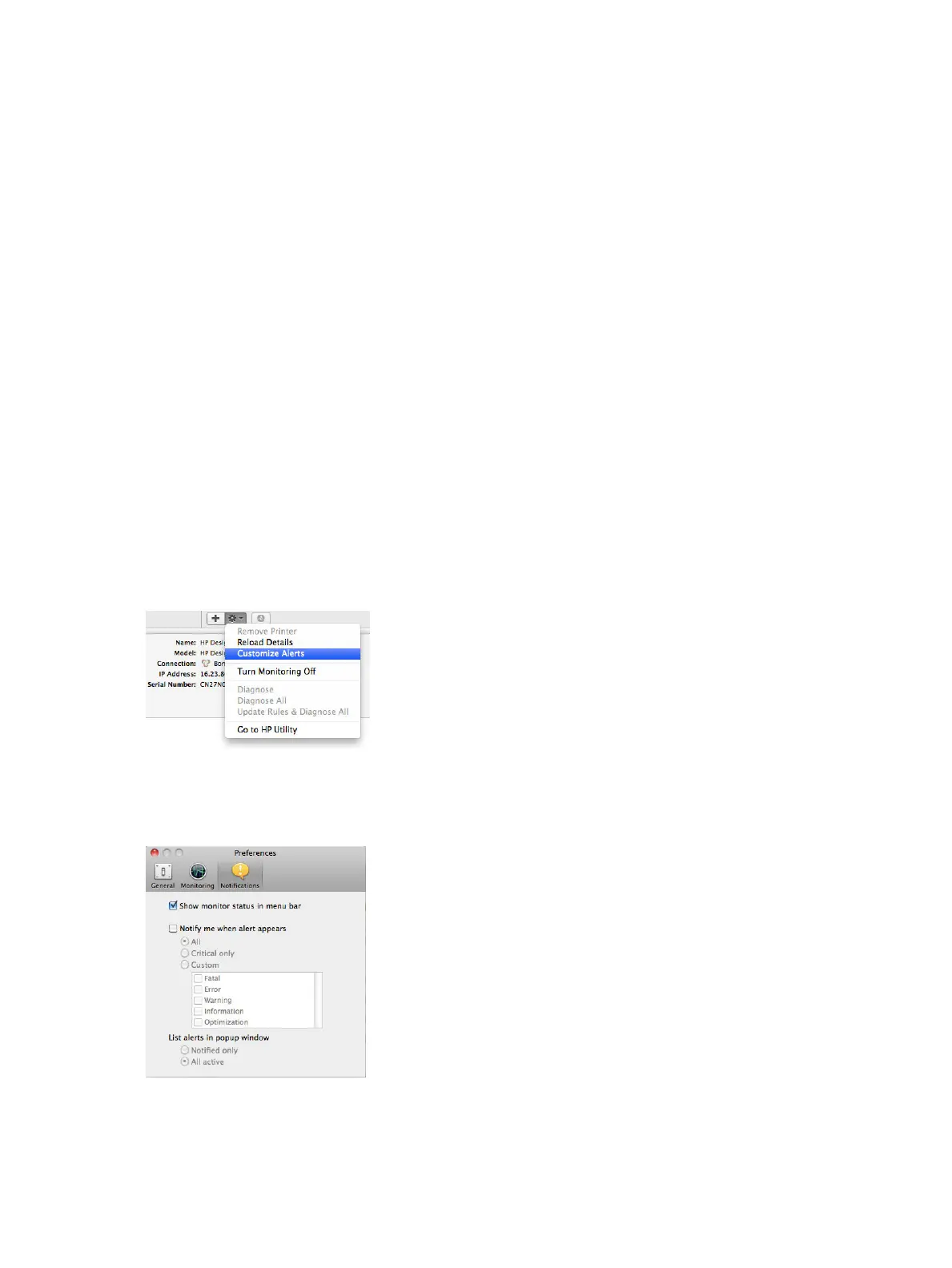 me when alert appears” box (as below), the alerts will be available in the HP Printer Monitor, but will not pop
