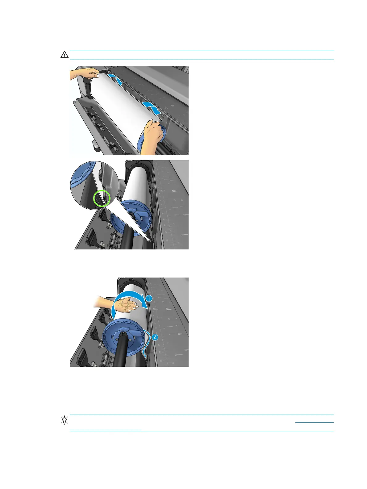 7. Roll the paper into the printer until you feel resistance and the paper flexes slightly. When the printer