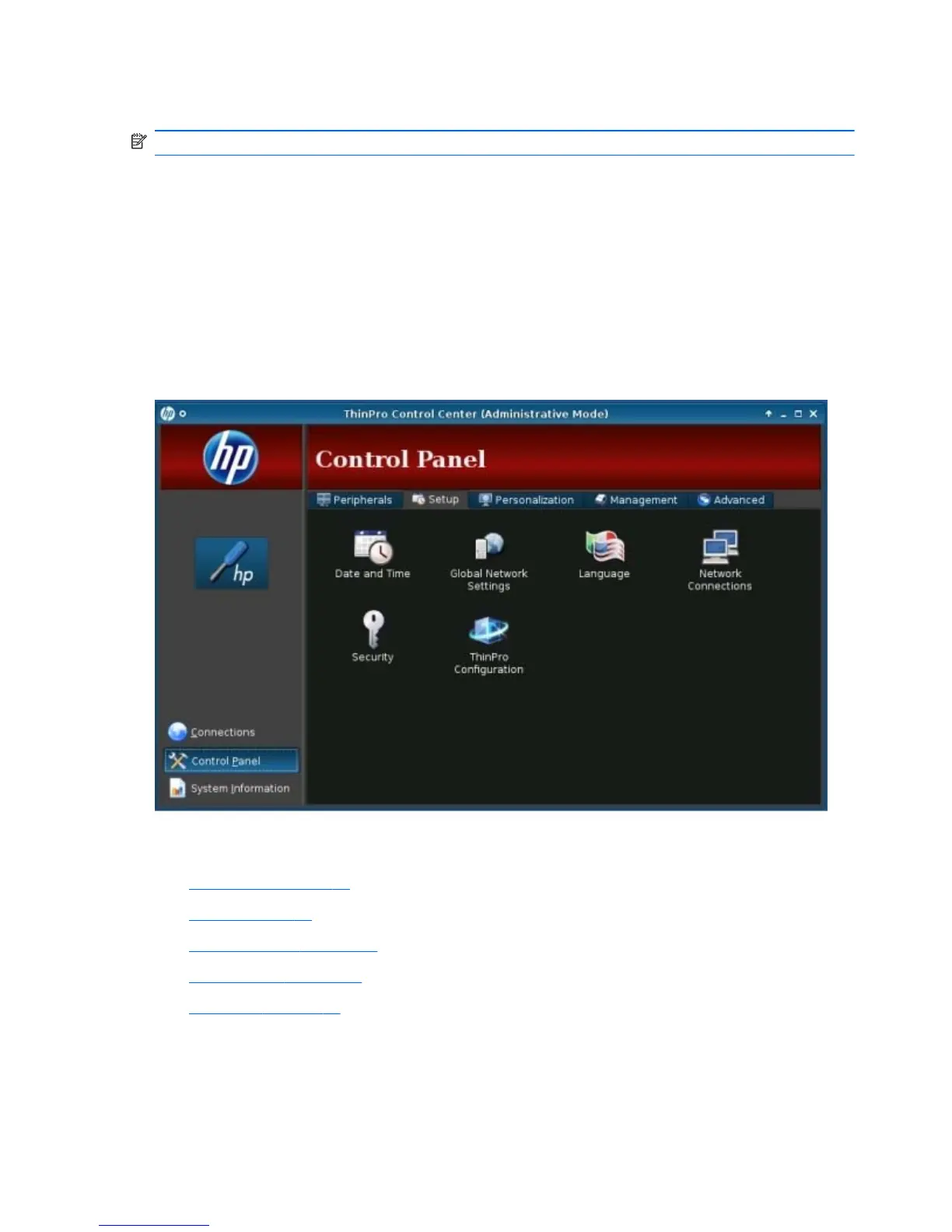 modified while in Administrator Mode by using the Setup tab and then the HP ThinPro