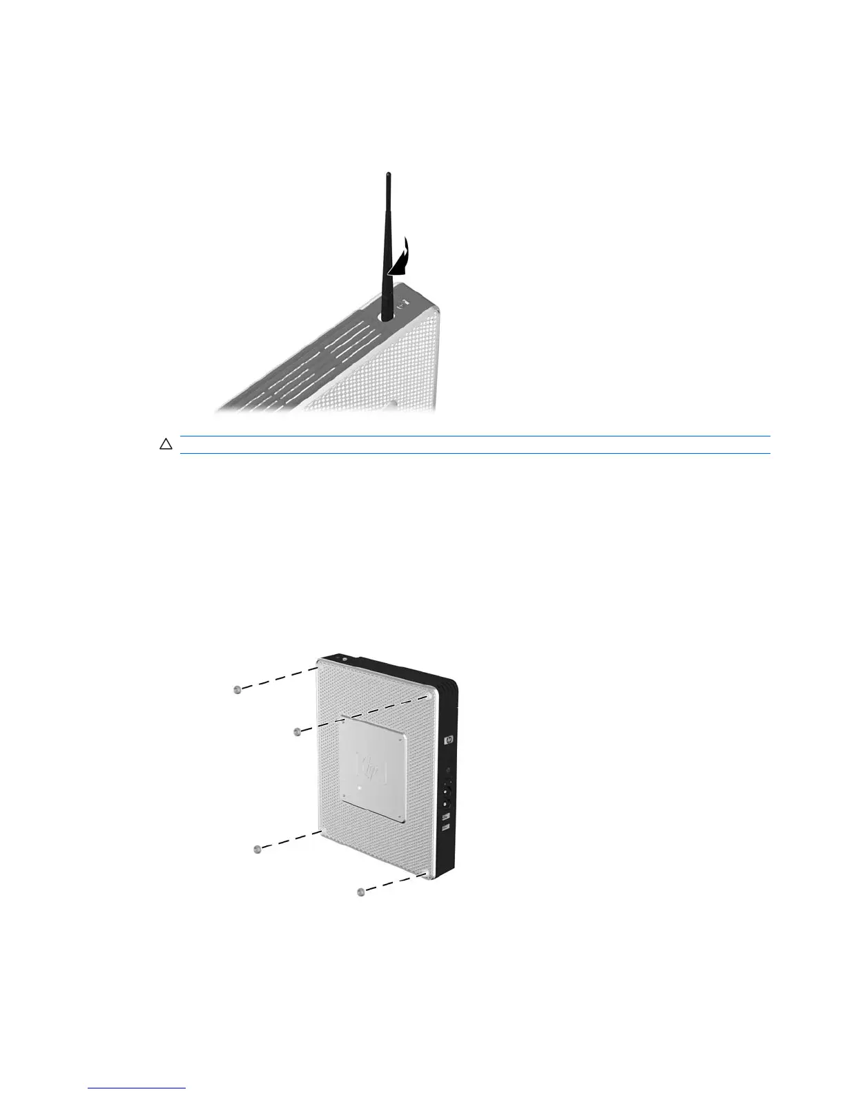 Screw the antenna in place on top of the thin client.
