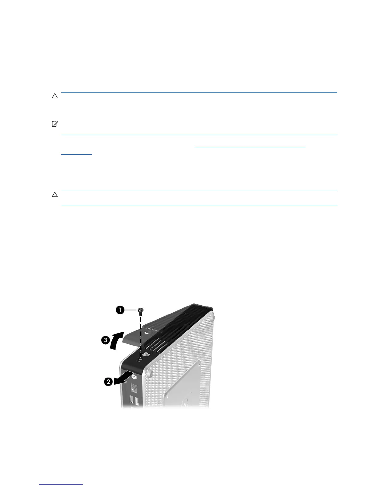 WARNING! Before removing the secure USB compartment cover, ensure that the thin client is turned