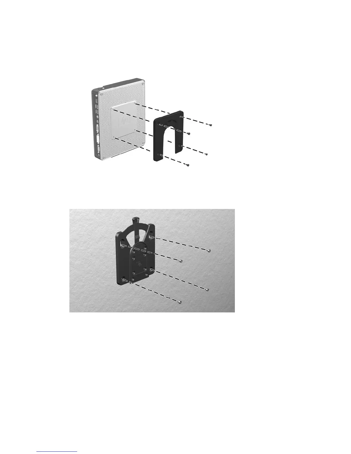 1. Using four 10 mm screws included in the mounting device kit, attach one side of the HP Quick